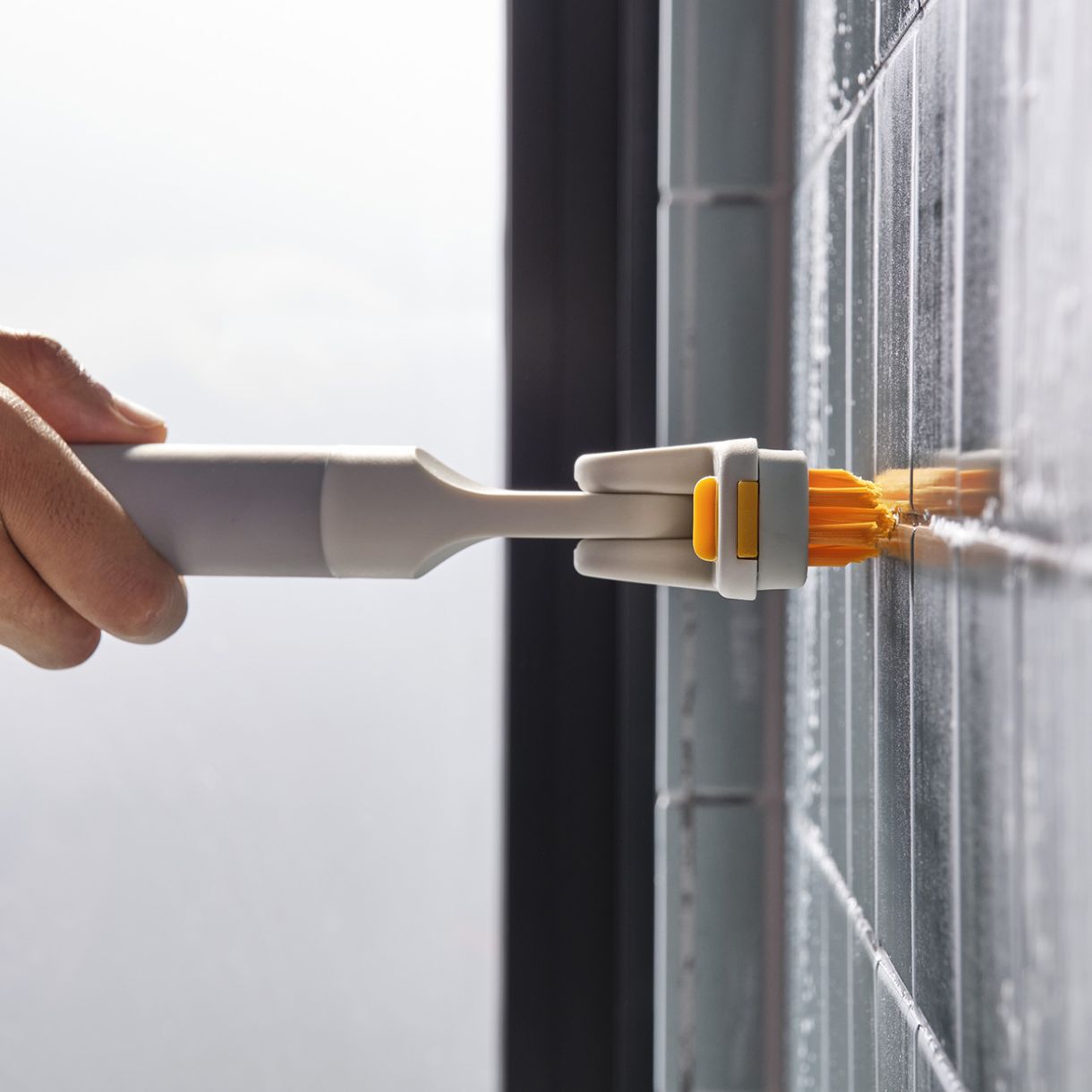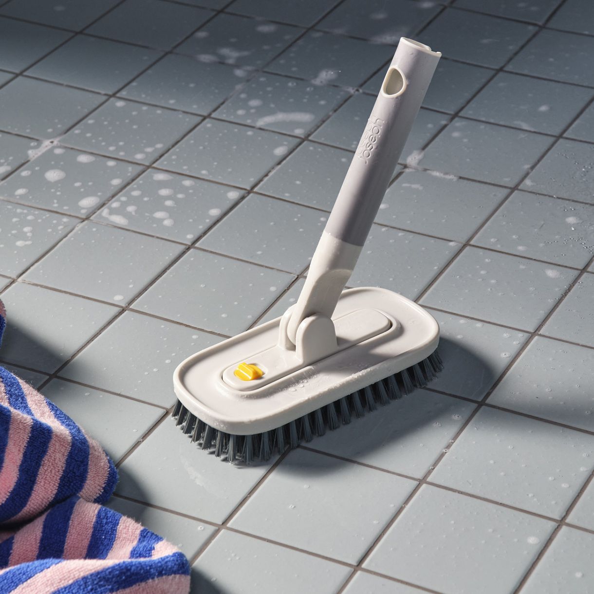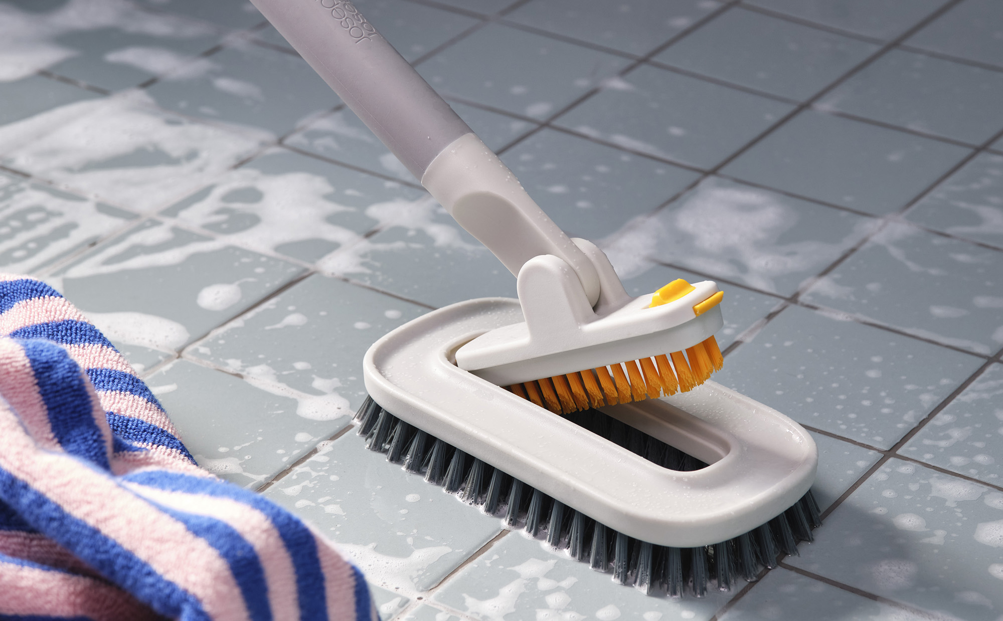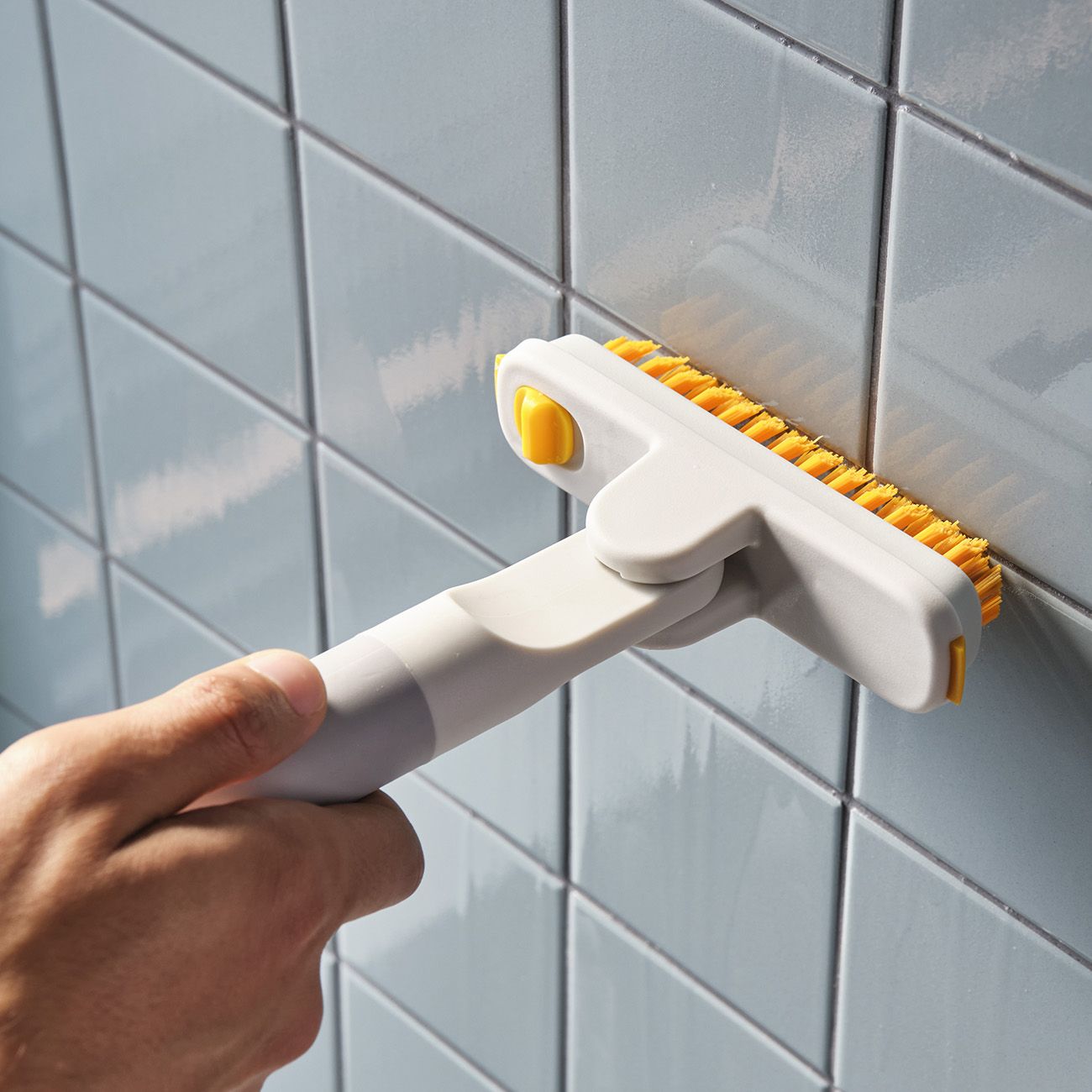 Тази универсална четка за почистване на плочки има издръжлива глава за почистване с подвижна четка за фуги за дълбоко почистване и дръжка с меко захващане. Съвместима е с телескопичната дръжка CleanTech™ за достигане до по-високи зони.