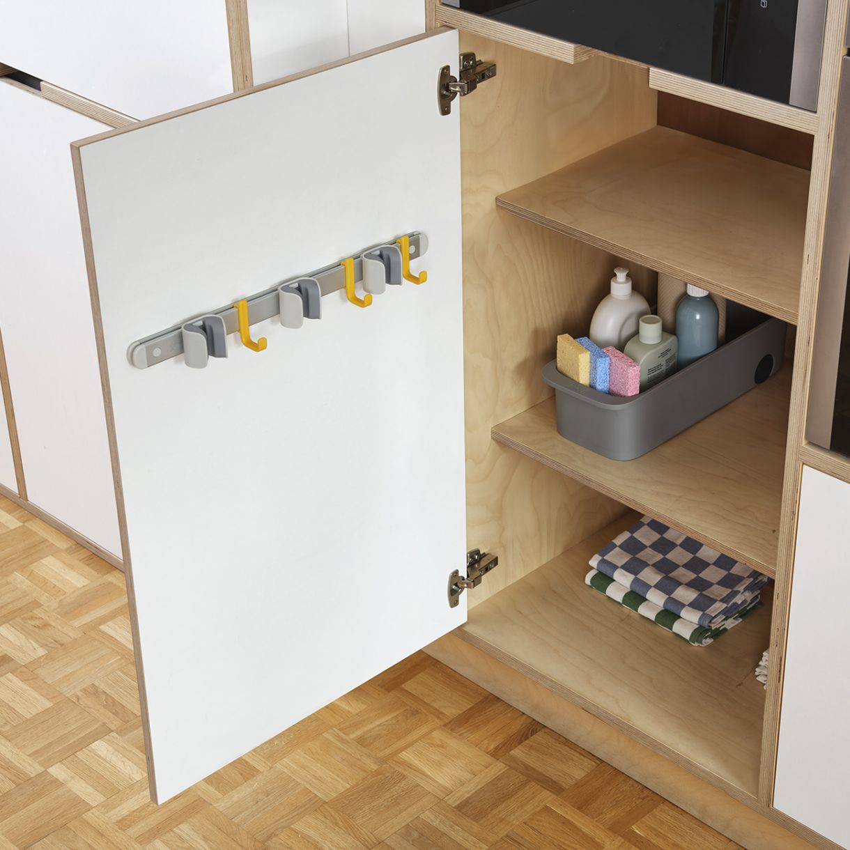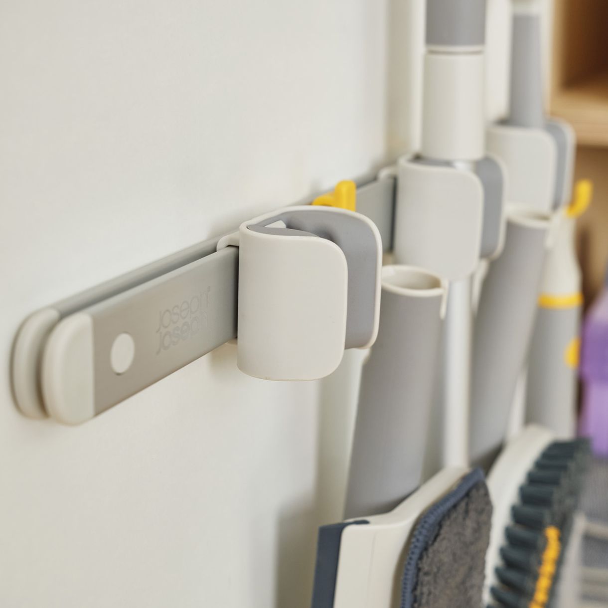 Организирайте инструментите си за почистване с тази алуминиева релса, която разполага с три регулируеми куки и дръжки за сигурно и компактно съхранение. Подходяща за различни инструменти от серия CleanTech™.