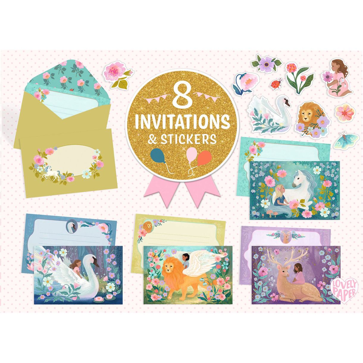 Празничен комплект за създаване на вълшебни покани! Този комплект съдържа 8 илюстрирани покани, 8 разнообразни плика и 2 листа със стикери за създаване на персонализирани послания. Комбинацията от метален ефект и матов печат подчертава различните дизайни и добавя оригинална и елегантна нотка. Висококачествената хартия гарантира красив завършек на вашите покани.