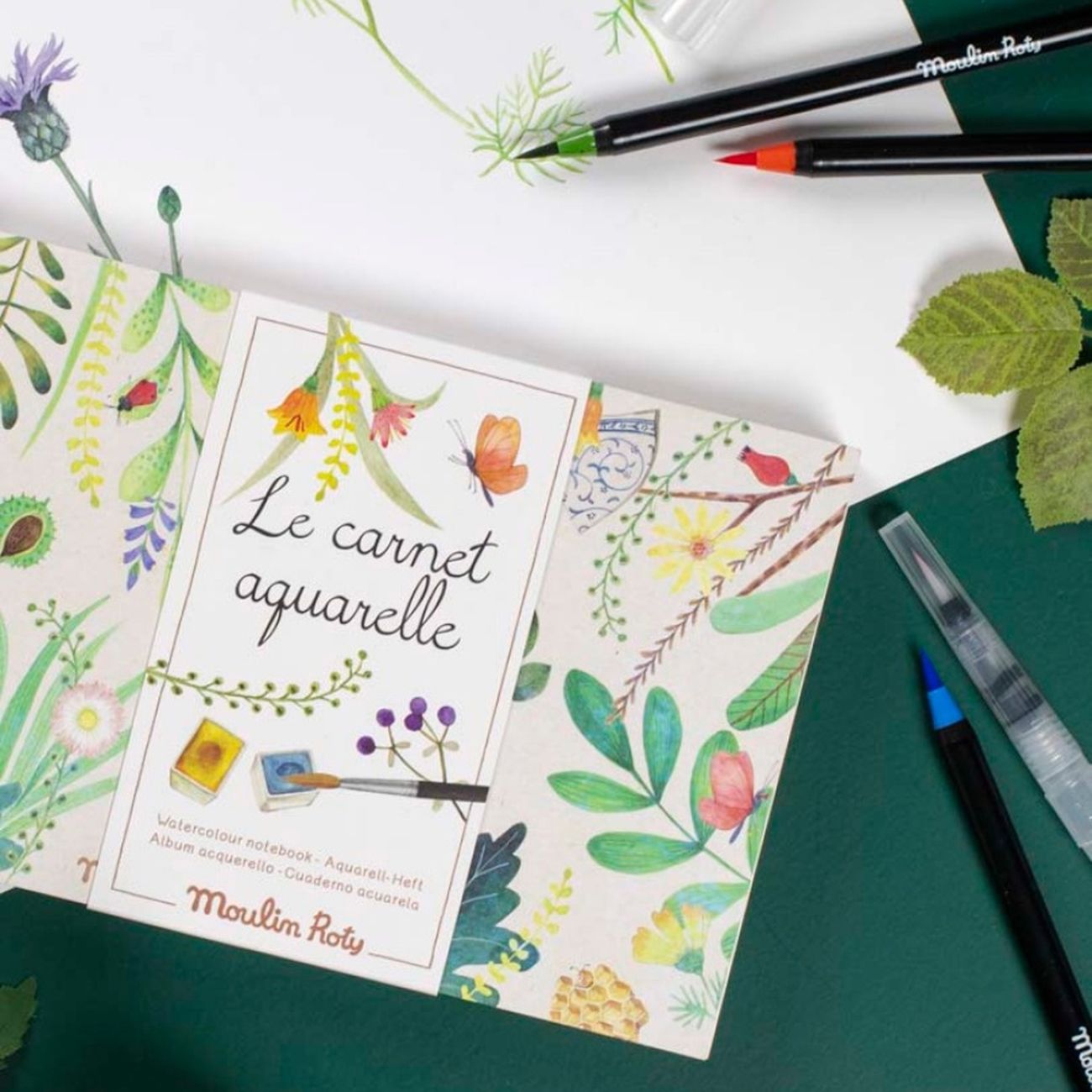 Открийте акварелния скицник от колекцията в Градината на Moulin Roty – креативен инструмент за деца и всички, които обичат рисуването и живописта. Със своята красиво илюстрирана корица на тема градина и дебел висококачествен хартия, бележникът е идеален за начинаещи в рисуването и акварела.