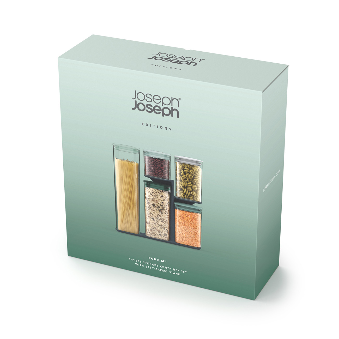 Използването на буркани за съхранение понякога може да е проблем, особено ако това, което Ви трябва, е на дъното на шкафа. Podium™ има умна поставка за съхранение, която позволява лесен достъп до всеки буркан, независимо от неговата позиция.