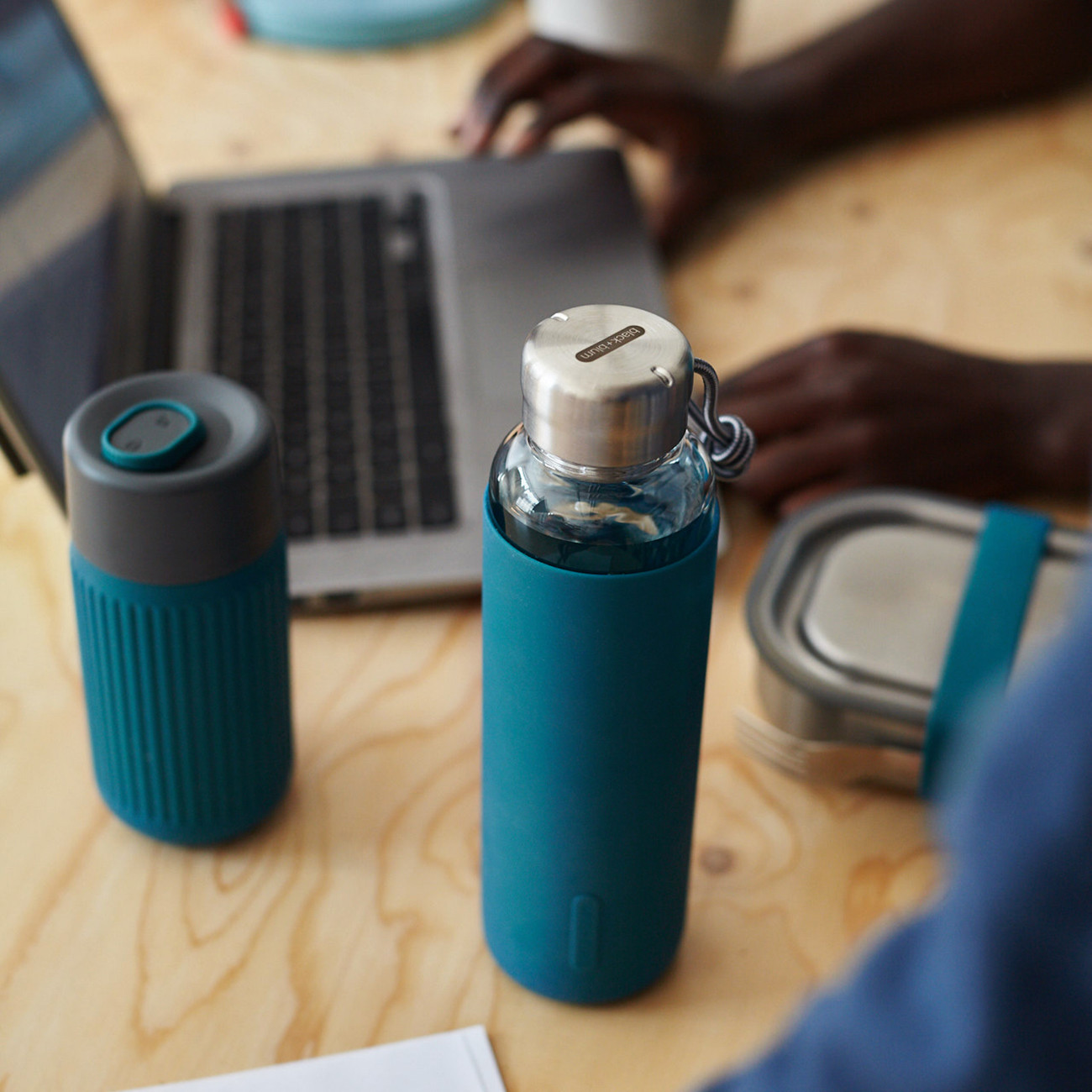 Има нещо прекрасно в това да пиеш вода от стъкло. Това прави водата вкусна, свежа и чиста. Black+Blum създават минималистичен дизайн на стъклена бутилка с гърло, от което се пие с удоволствие. Добавят силиконов ръкав, който осигурява добър захват и защита, за да компенсира крехкостта на стъклото.