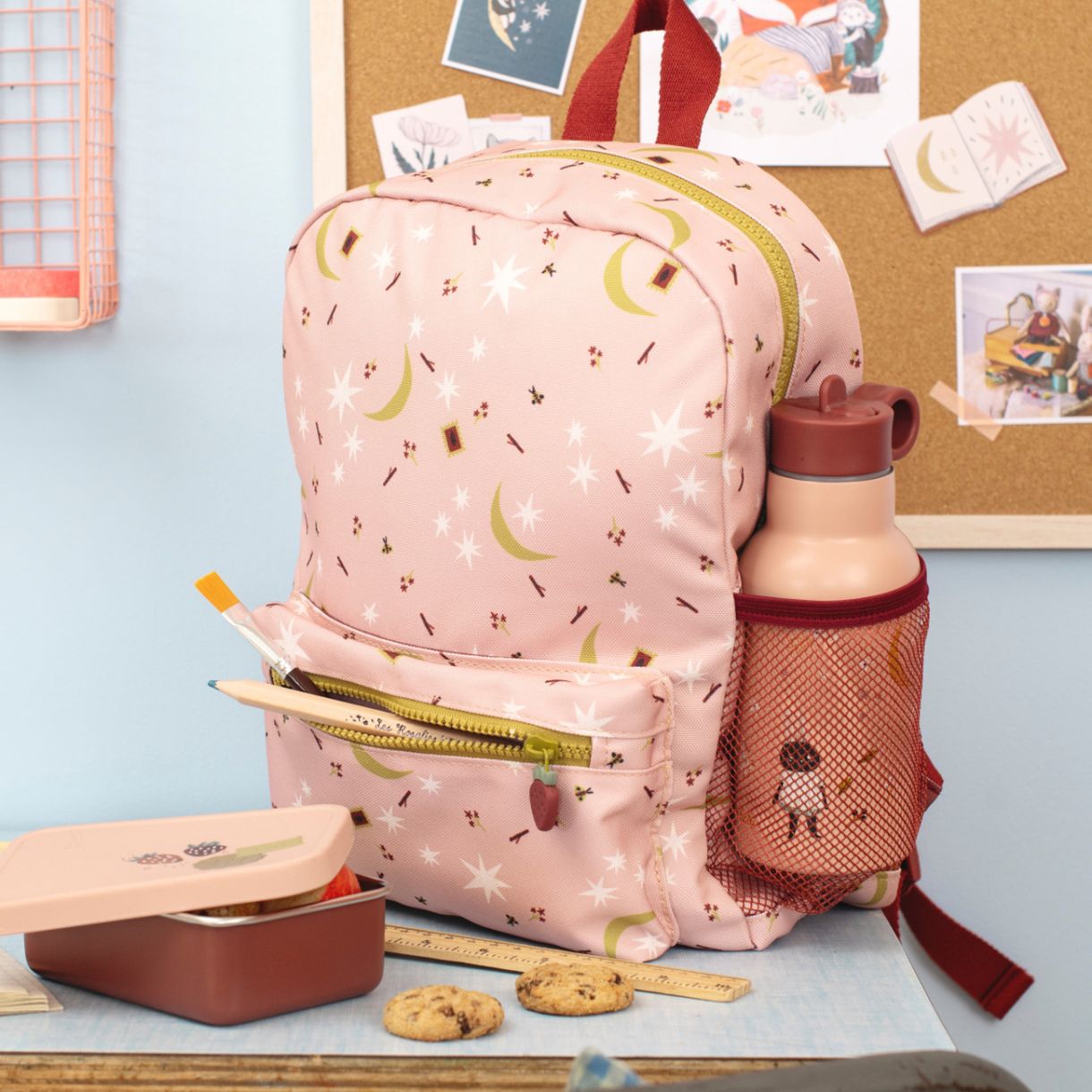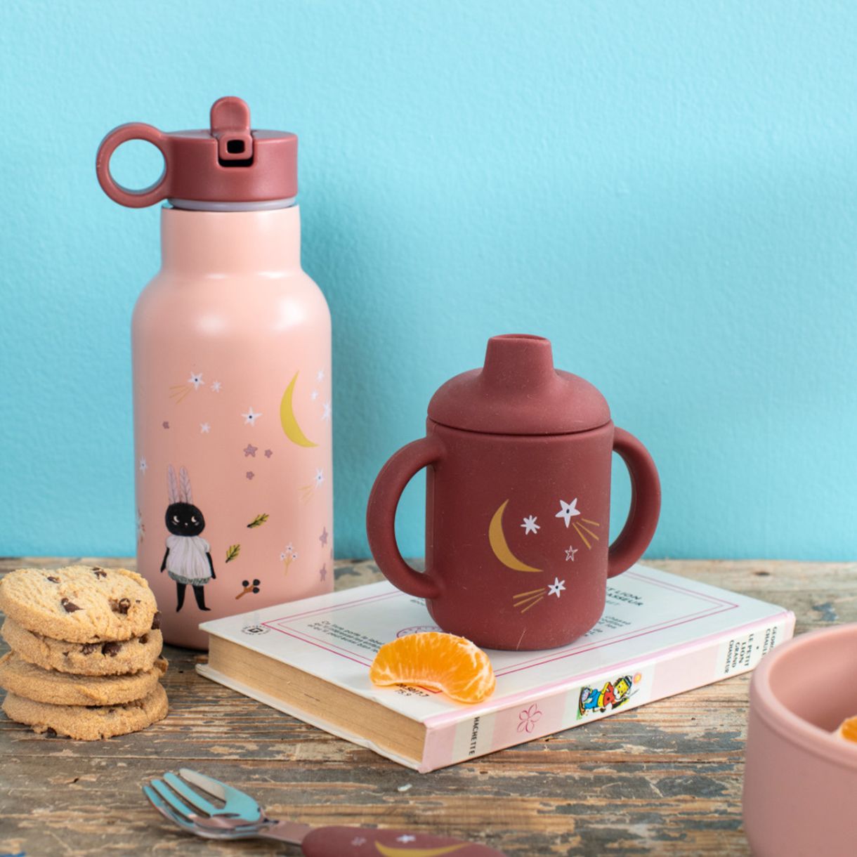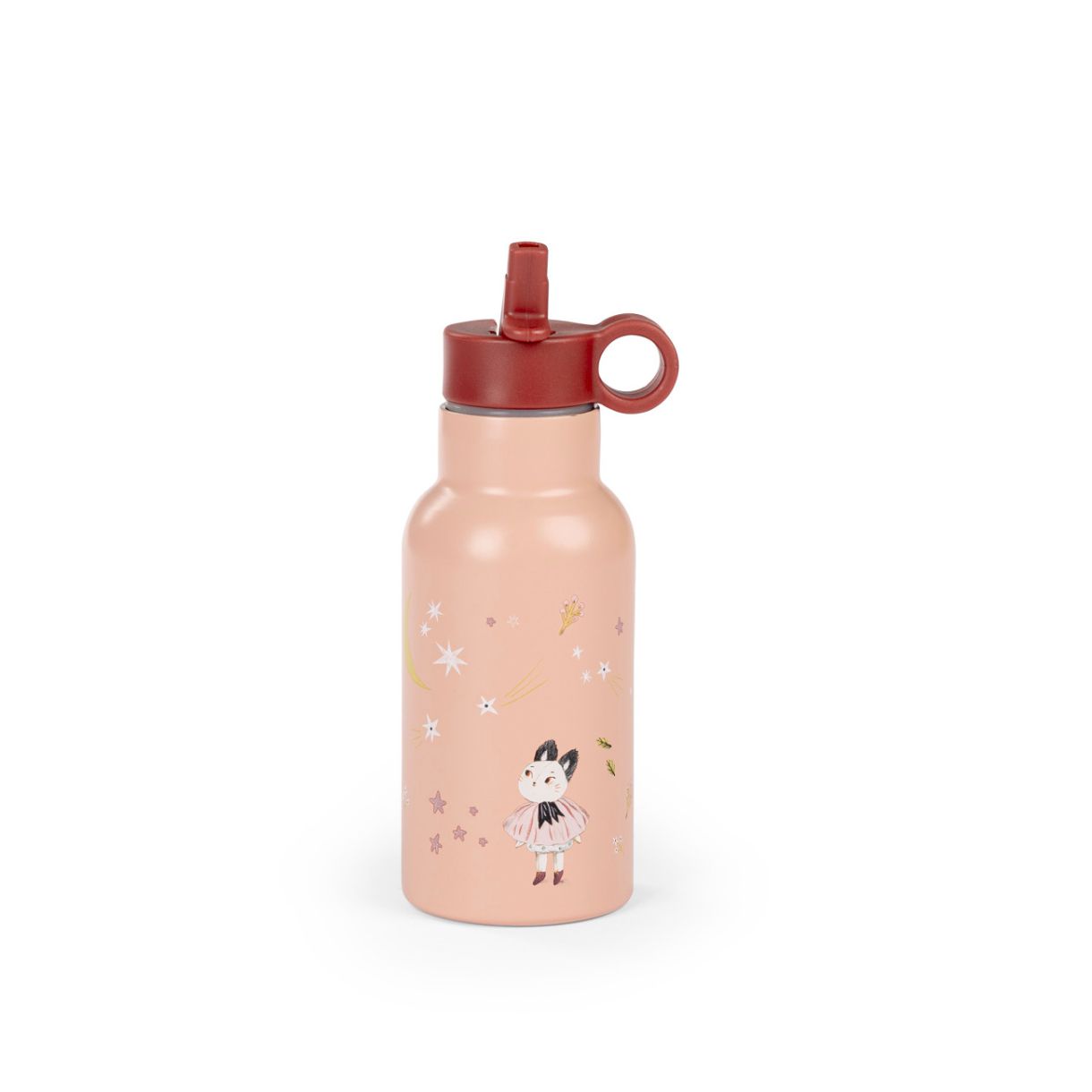 Красиво илюстрирана бутилка за вода от колекция след дъжда, която да носите навсякъде! Сламката за пиене се отваря лесно и се затваря плътно, което не позволява изливане. Удобна за носене навсякъде.
