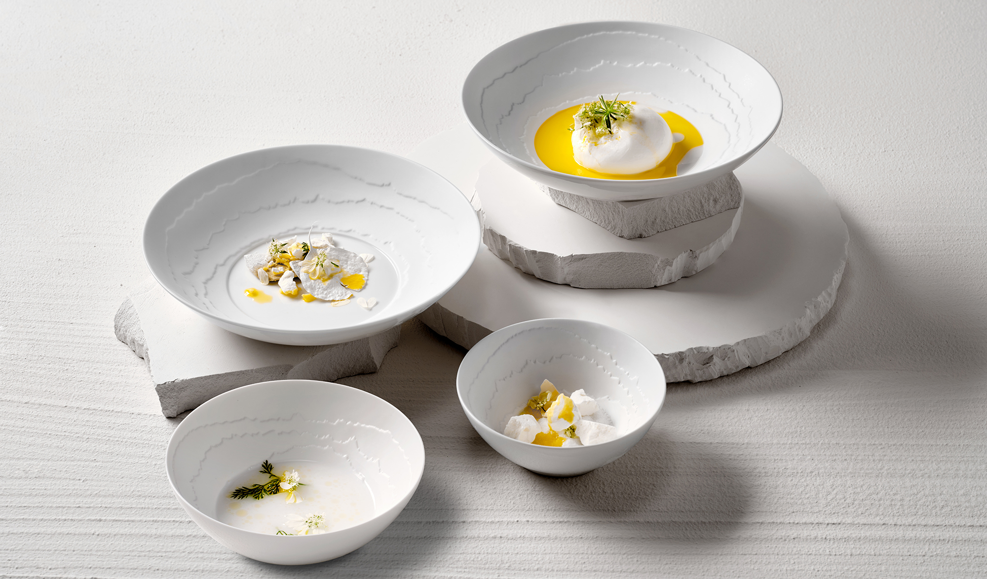 Akemi разказва история за крехкост и сила, за крехкост и устойчивост – шедьовър от висококачествен порцелан, създаден за изискана гурме кухня и специални поводи. Матовите, текстурирани повърхности, напомнящи за изкусно накъсана хартия, се срещат с гланцирани, отразяващи области. Това завладяващо взаимодействие на светлина и текстура придава на всяка чиния фин драматичен ефект и създава сцена, на която кулинарните творения са перфектно представени. Akemi е израз на стил, изтънченост и занаятчийско съвършенство. Идеален за тези с око за детайлите и вкус към необикновеното.