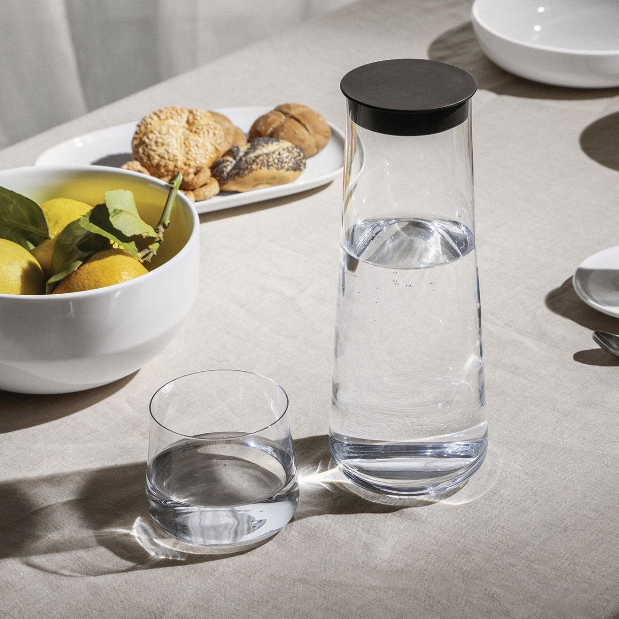 Проектирана от Naoto Fukasawa за колкеция Eugenia, тази гарафа се отличава с изцяло оригинален дизайн: нейната издължена форма напомня другите елементи на серията, завършваща в края с ръб, който се издига леко вертикално. Нарича се „Donkaku“, термин на японски, който означава тъп ъгъл – детайл, избран от Fukasawa, за да характеризира минималистичния дизайн на всички елементи в колекцията. Практичната силиконова тапа допълва гарафата.