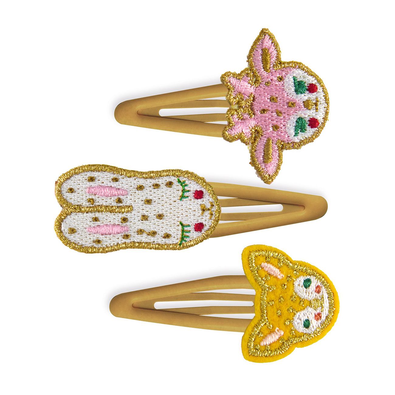 • Комплектът включва три метални фиби с бродерия от плат с изображения на елен, заек и лисица.