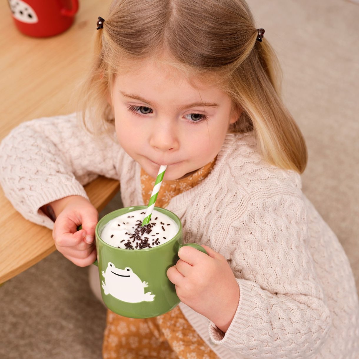Двете дръжки осигуряват здраво захващане на малките ръчички. Освен това неглазираният и следователно матов мотив е от двете страни.