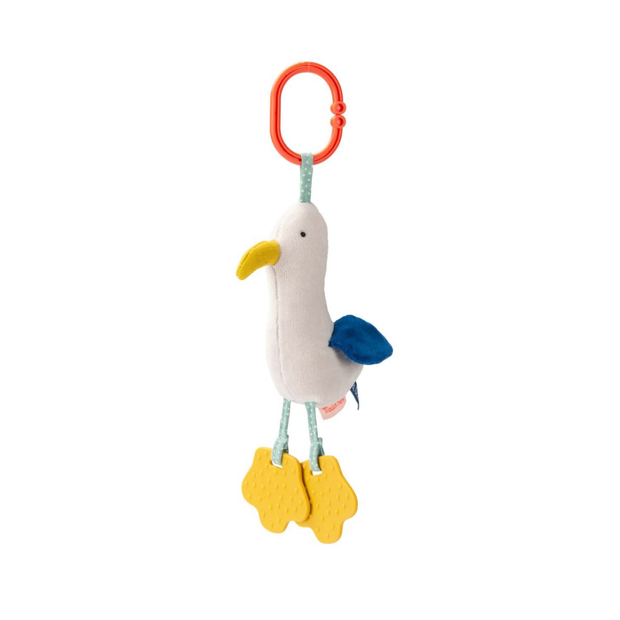 Чайката Марко ще придружава бебето ви всеки ден, може да окачите на количката на вашето дете, арка за занимания или кошара за игра. Мека играчка за активност, предлагаща комбинация от звуци и текстури, образователна играчка, пълна с цветове, която ще удиви детето ви с тези дейности.