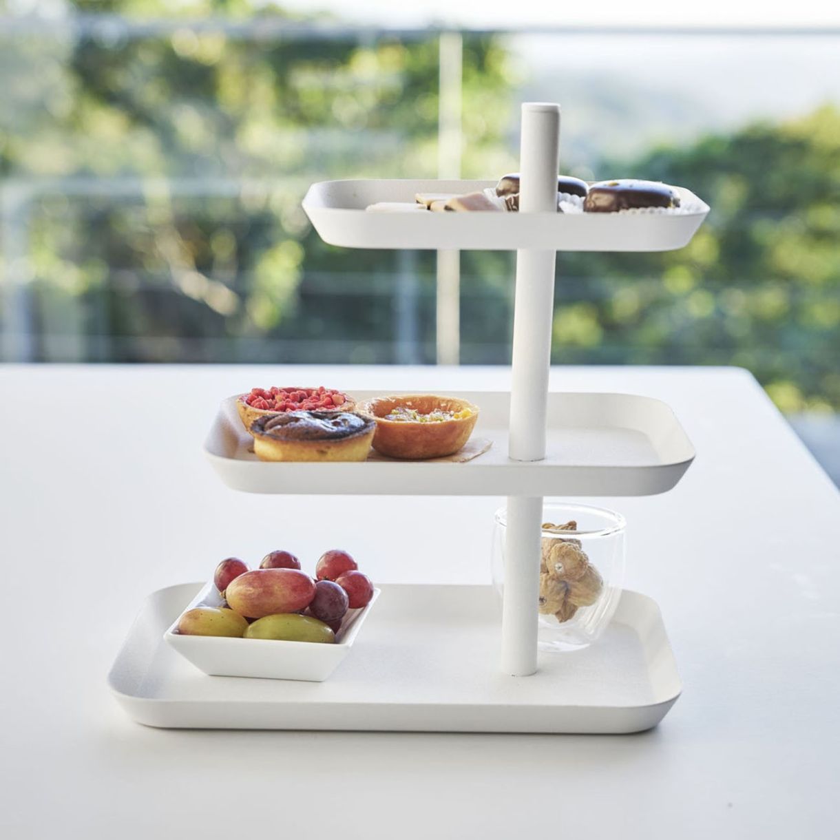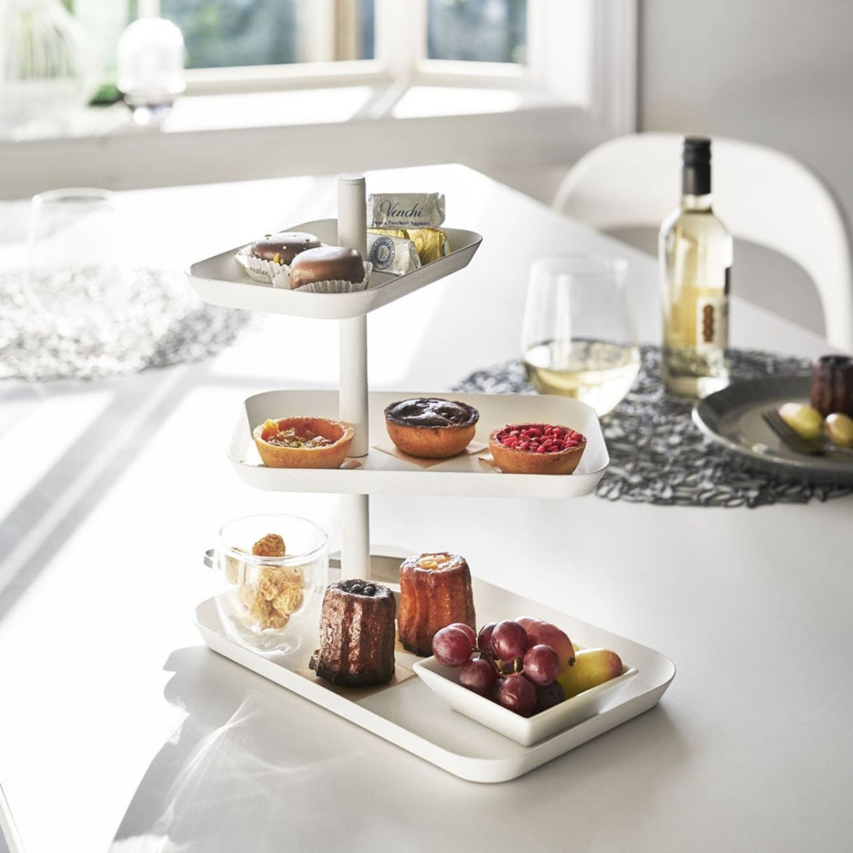 Поднесете сладки, соленки, мини сандвичи, плодове и сирена с тази триетажна поставка за сервиране. Въртящият се набор от плата прави перфектното място за десерти или хапки, а модерният дизайн подхожда на всеки плот. Идеален за следобедна закуска или изискан брънч.