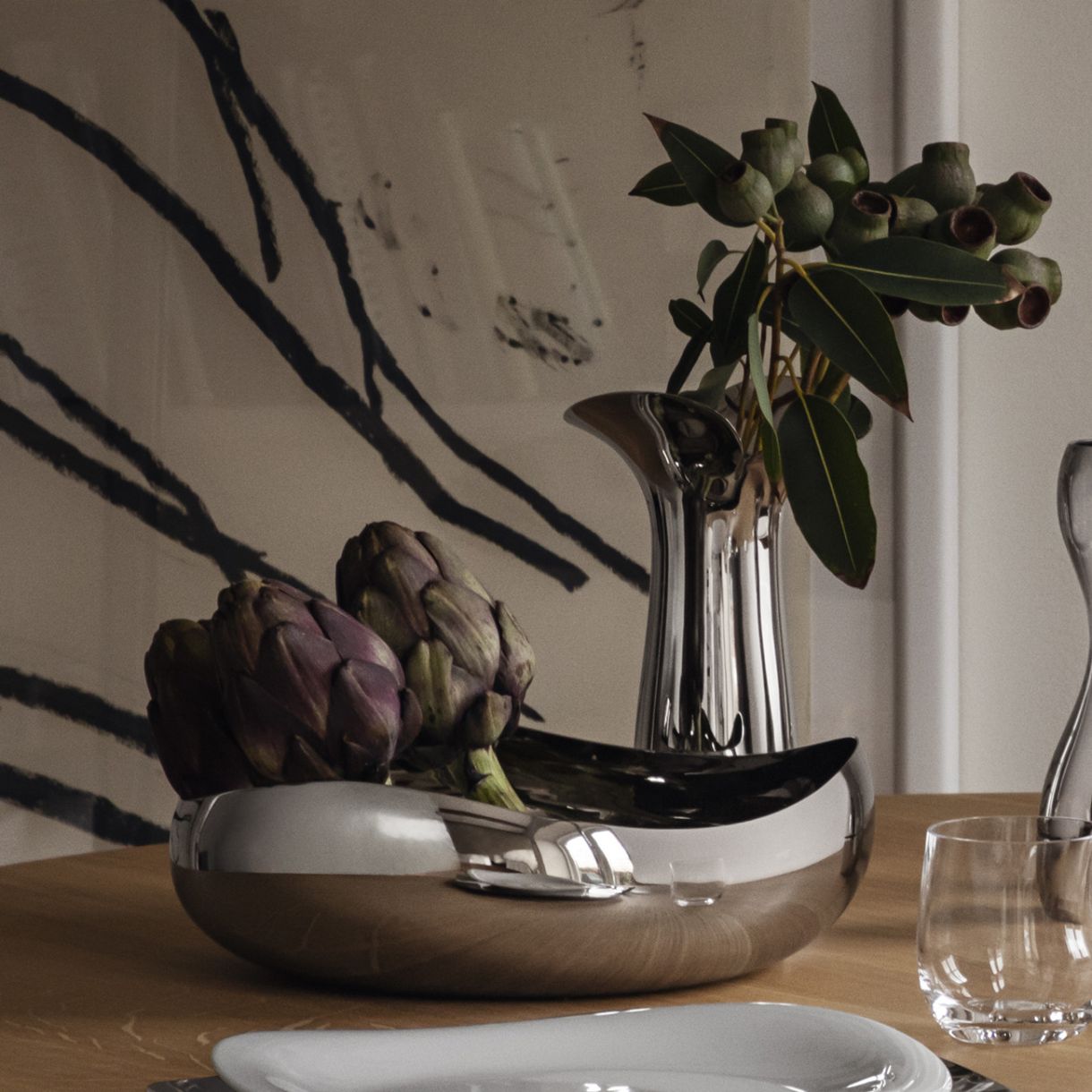 Меките плавни линии на тази голяма впечатляваща купа я правят перфектния център на масата. Пълна със салата, плодове или може би дори цветя. Огледално полираната повърхност отразява стаята, в която се намира, добавяйки допълнителен елемент на декорация. Стояща самостоятелно или групирана с други купи от същата колекция, тя добавя съвременен елемент към всяка интериорна декорация.