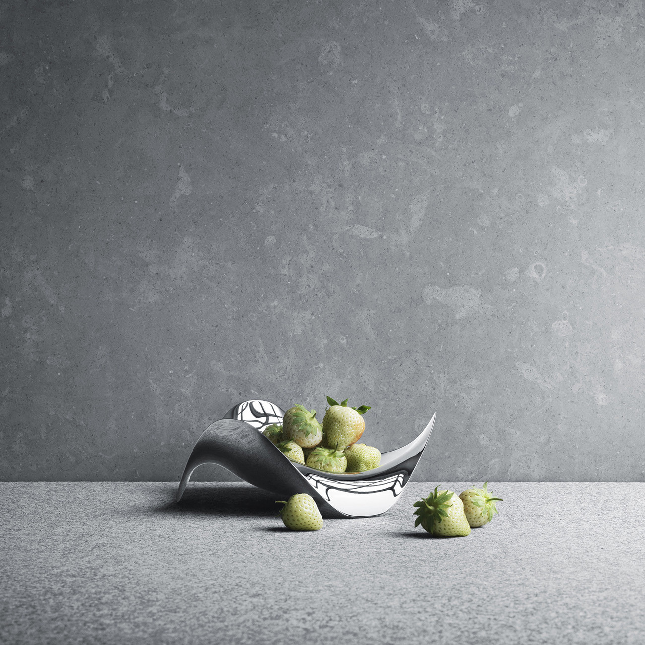 Сякаш повърхността на течност е превърната в стомана, извивките и вълните на купата Cobra изглежда постоянно се променят в зависимост от гледната точка и светлината. Силно полираната повърхност от неръждаема стомана отразява околната среда, хипнотизирайки окото още повече. Празна, купата е красив детайл на масата, но има и практичност - купата може да побере малки закуски или лакомства, а формата я прави лесна за вземане и пренасяне.