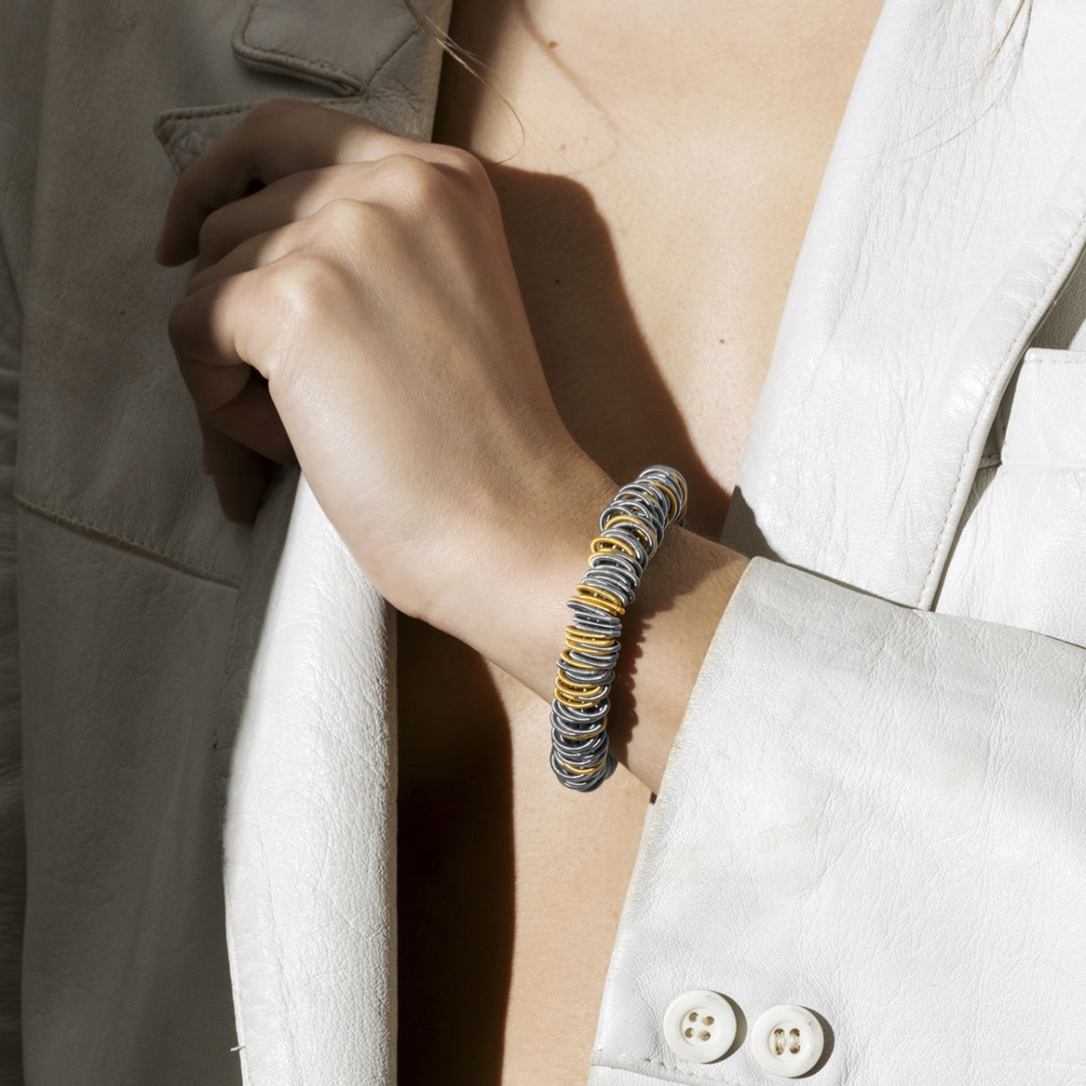Идеална гривна за тези, които искат да блестят с изтънчена елегантност по всяко време на деня.Закопчалката от неръждаема стомана има магнитен елемент и името на марката.