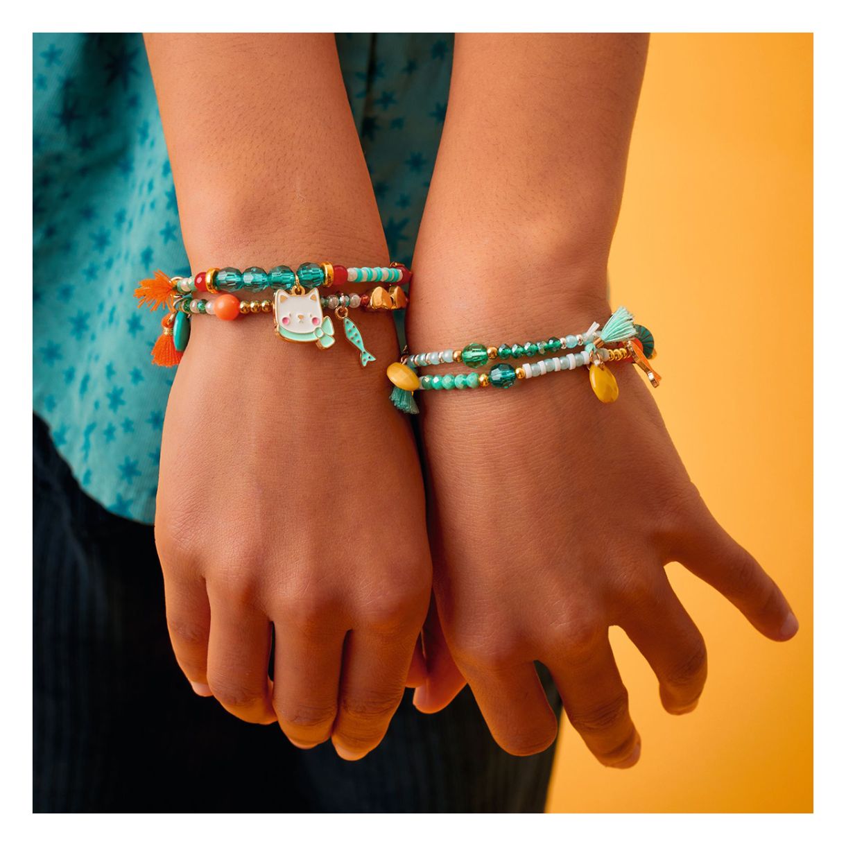- Висококачествени материали: емайлирани неръждаеми стоманени висулки и леки, устойчиви акрилни мъниста.