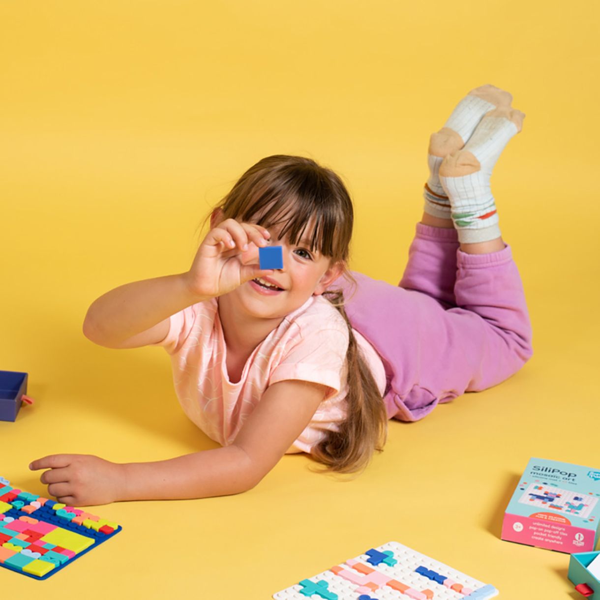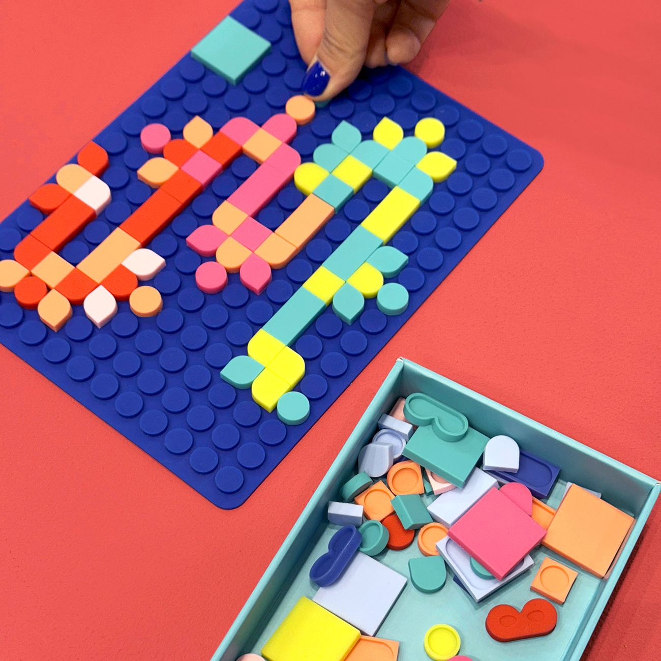 Креативен комплект мозайка със силиконова основа и цветни елементи, който позволява на децата да създават и пресъздават различни дизайни отново и отново. Компактна, лека и лесна за пренасяне, тя е идеална за игра у дома, по време на пътуване или навън. Меките и гъвкави елементи стимулират сетивата, въображението и фината моторика, като осигуряват забавление без екрани.