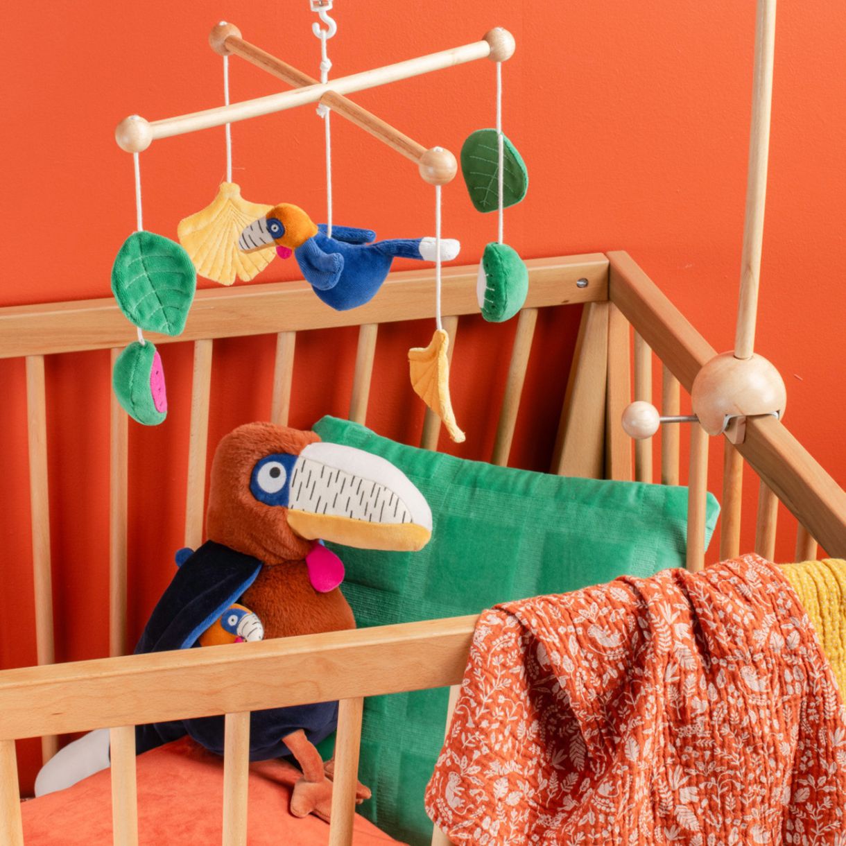 Запознайте се с Личи – веселия тукан, който крие под крилете си множество забавни активности! Цветен пръстен с мъниста, дрънкалки и шумолящо листо „скрич“ приканват бебето да докосва, разклаща и изследва света с любопитство и радост. Тази мека плюшена играчка съчетава разнообразие от звуци и текстури, които стимулират сетивното развитие още от първите месеци. Богатата палитра от цветове и интерактивните елементи превръщат Личи в истинско откритие за малките ръчички.