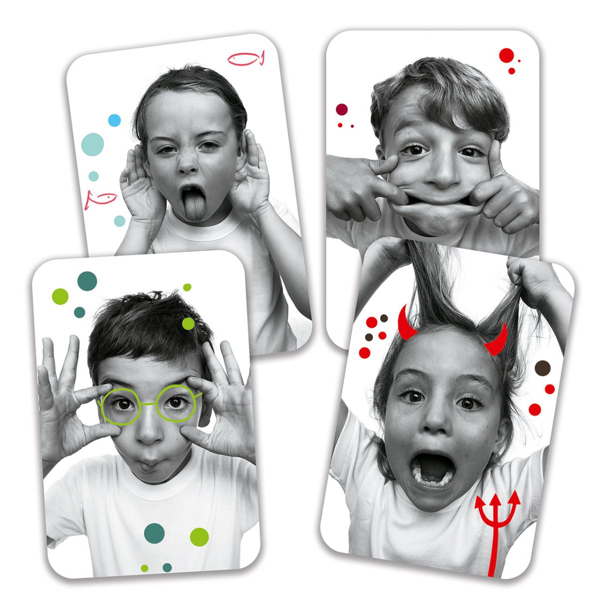 Най-накрая децата могат да правят смешни физиономии! Колкото по-добри са те, толкова по-бързо партньорът ви ще ги разпознае и вие ще спечелите!Игра на памет и наблюдателност, която се играе в екип. Забавлението и хихикането са гарантирани!