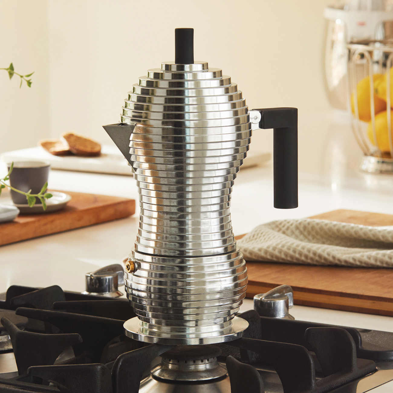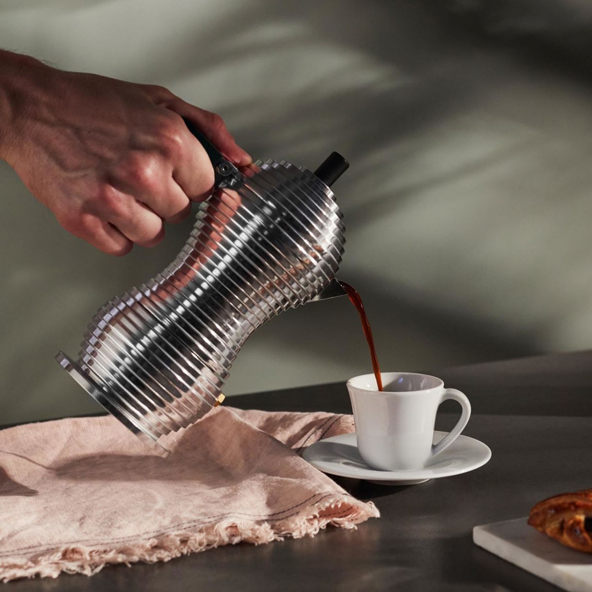 Кафеварката Pulcina, проектирана от Michele de Lucchi е продукт на интензивни изследвания в областта на оптимизацията на формата на кафеварката, за да се подобри и да насърчи органолептичните свойства на кафето. Благодарение на вътрешната форма на своя специален нагревател, Pulcina спира автоматично филтриране на кафето в подходящия момент. Това прекъсване помага за премахване на фазата на изригване, етап на окончателното филтриране, който генерира препечения и горчив привкус, който гарантира, че са се запазили само най-добрите качества на кафето и повишава плътността на своя аромат. Гърлото е с "V" образна форма, напомняща на малка човка. То е специално проектирано да не подлива капки при наливане. Практично и функционално, правенето на кафе с Pulcina е точно като правенето с традиционна кафеварка.