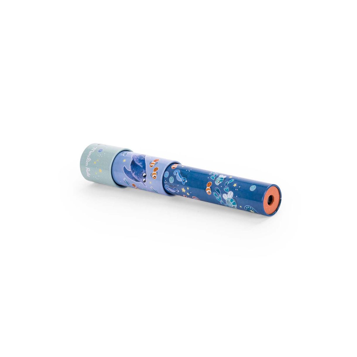 Пъстър метален калейдоскоп, илюстриран с приятелите на Поли, които изследват морското дъно! Завъртете двете части на калейдоскопа едновременно в противоположни посоки, за да откриете все нови и нови цветови комбинации.