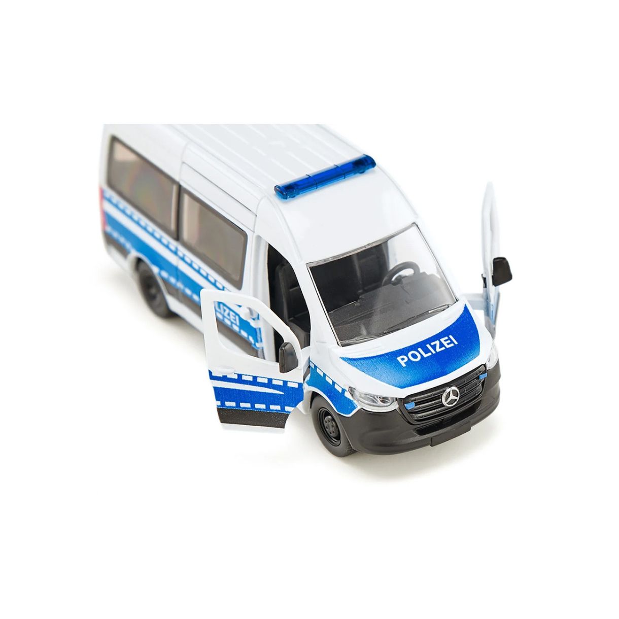 Стигнете бързо до местопроизшествието Големите събития често означават необходимост от полиция. С последното поколение Mercedes-Benz Sprinter в дизайна на Федералната полиция можете да стигнете до мястото на събитието бързо и безопасно. Автомобила е оборудван с профилирани гуми със спортни джанти. Полицаите могат да влизат и излизат бързо през двете отварящи се предни врати и плъзгащата се врата от дясната страна на автомобила.