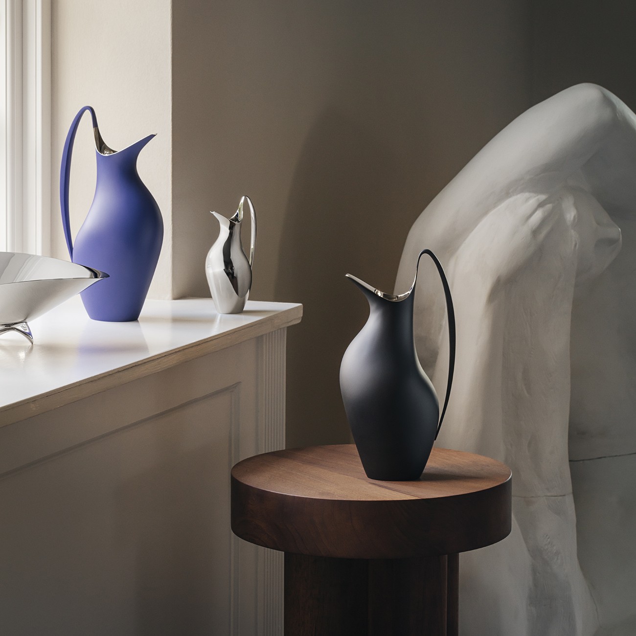 Черната версия на каната KOPPEL придава на емблематичния дизайн поразително елегантна привлекателност. Каната е с гладко матово покритие и чучур от огледално полирана неръждаема стомана, който добавя елегантен детайл. Първоначално проектирана от скулптора Хенинг Копел през 50-те години на миналия век и дефинирана с уникален скулптурен вид, каната се е утвърдила като вечна икона на Georg Jensen.