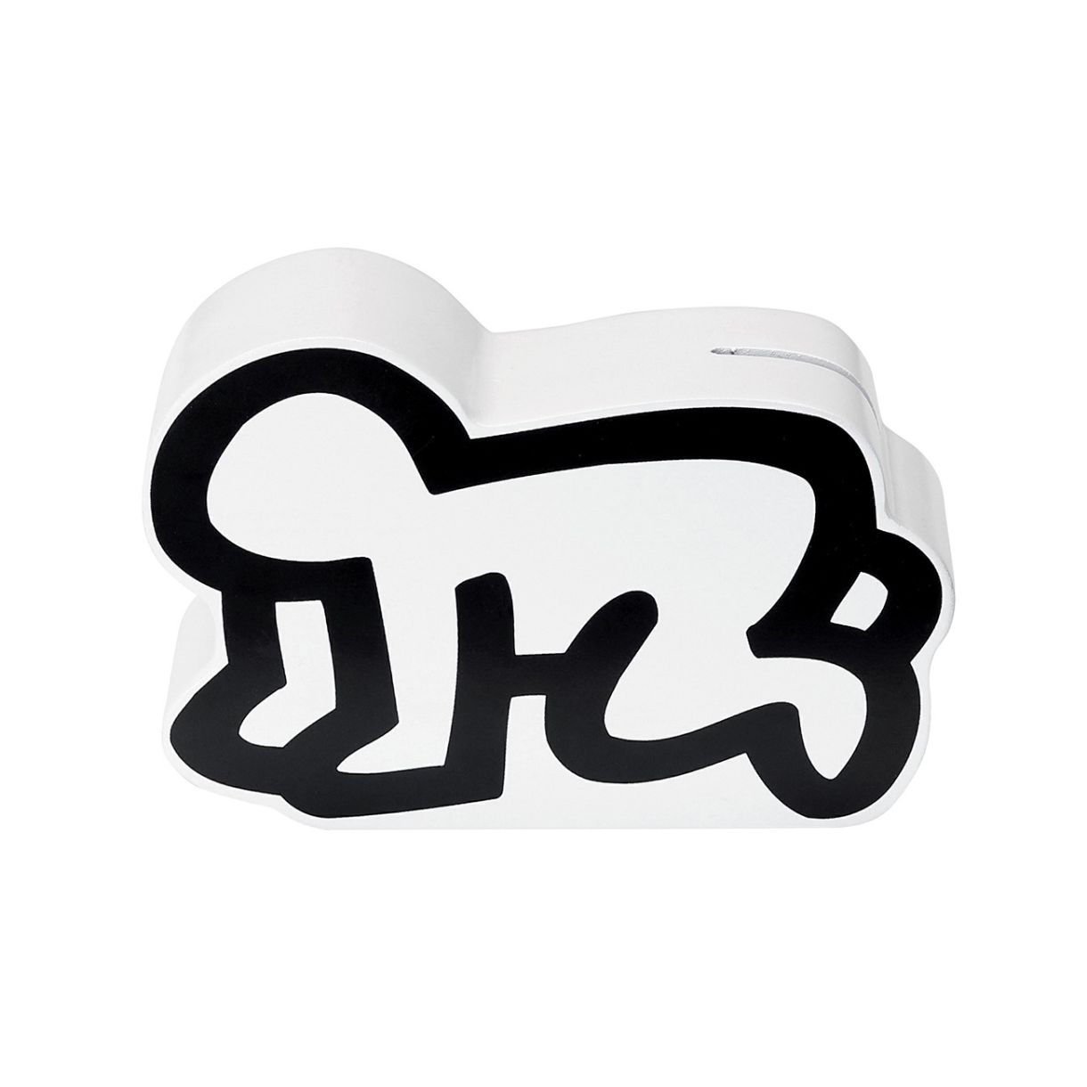 Дървена касичка по дизайн на Keith Haring въз основа на рисунка на Radiant Baby произведена от Vilac.