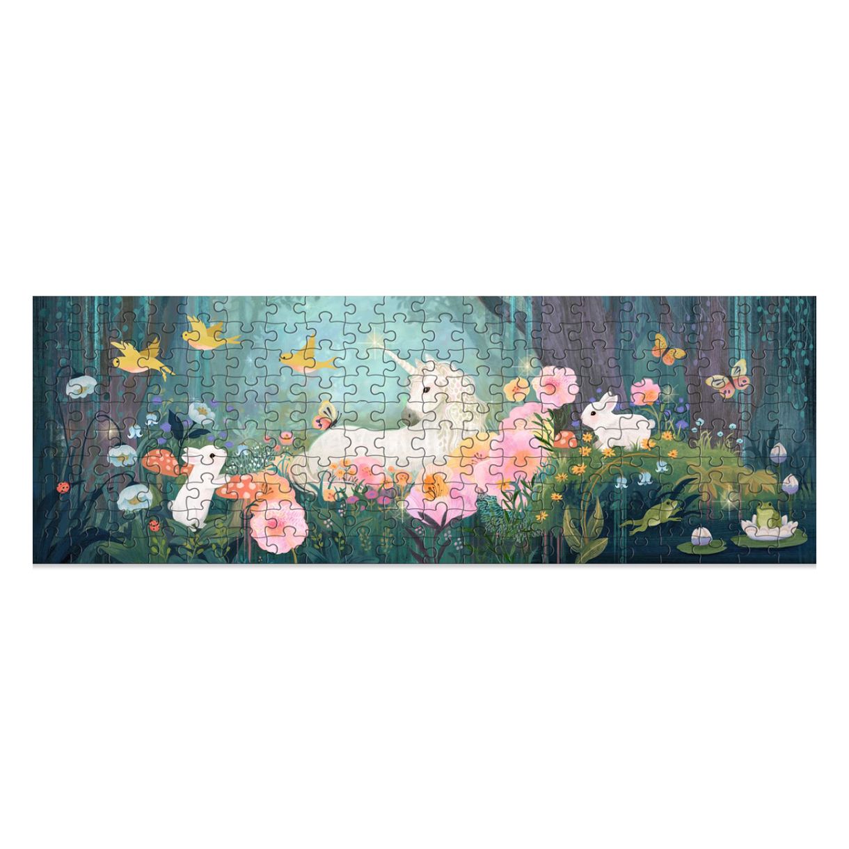 На ръба на гората е пъзел от колекцията на Djeco галерия от 200 части, представящ причудлив свят. Илюстраторите получиха свобода с този нов изключително дълъг формат на пъзел! Забавен и оригинален начин децата да откриват картини.