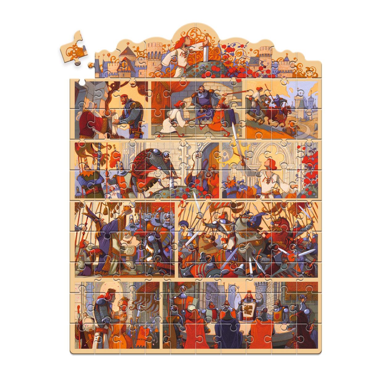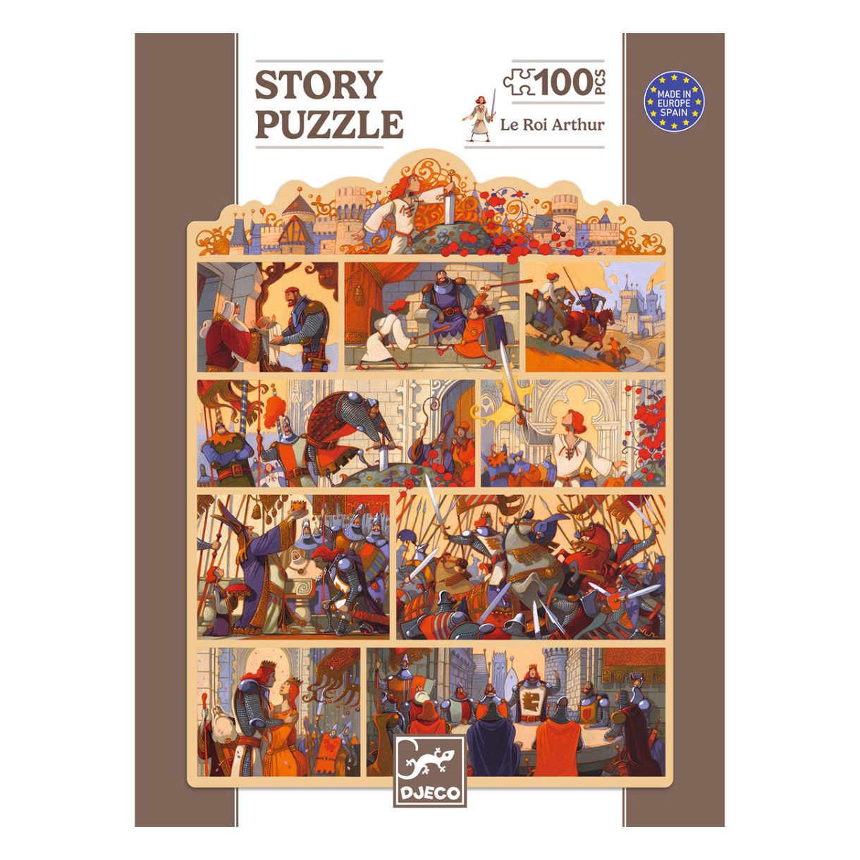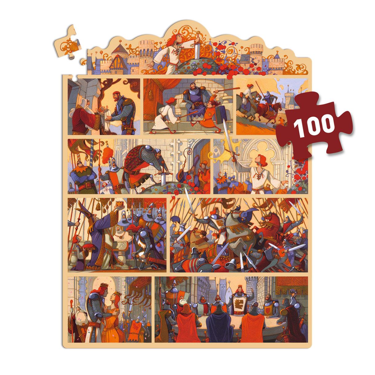 Детето решава пъзел, за да открие известната приказка за крал Артур като комикс. Този разкошен пъзел от 100 части се предлага в красива кутия.