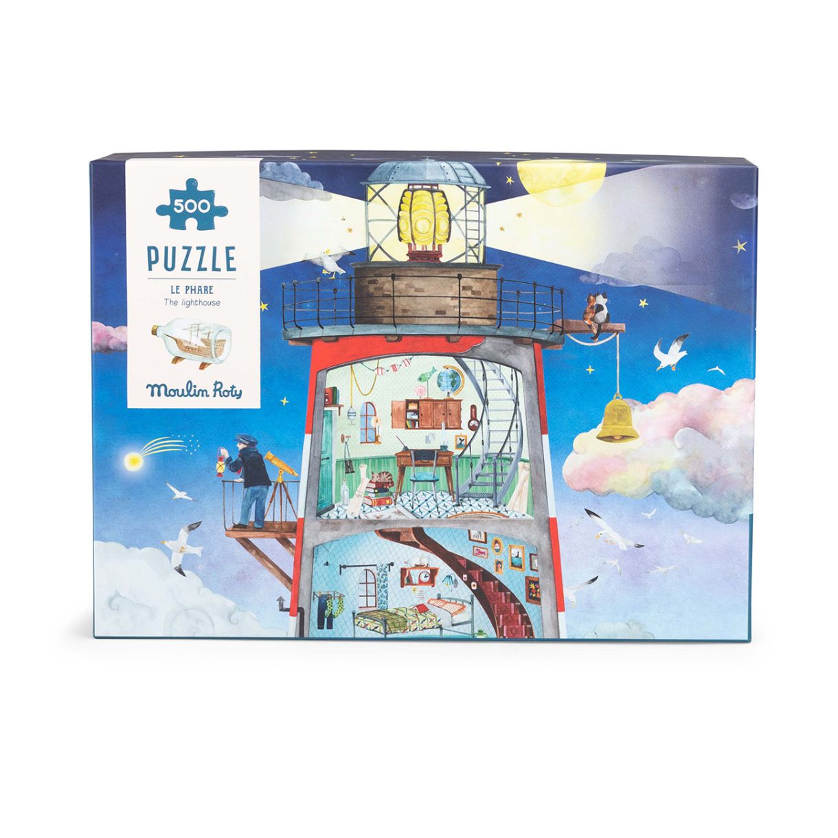 Готови ли сте за морско приключение? Потопете се в света на пазителите на фара и открийте магията на морските дълбини! Наредете пъзел от 500 части и разгледайте отблизо чайките, летящите риби, рибарските лодки и живота вътре във фарa – едно място, изпълнено с тайни и очарование. Комплектът включва и плакат-модел, който помага на децата лесно да сглобят цялата картина.