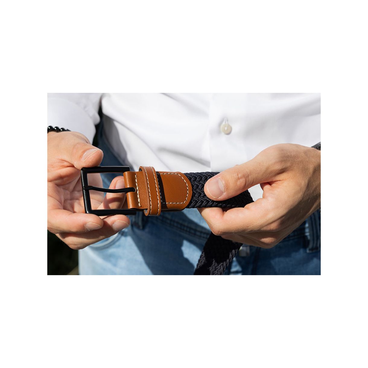 Изработен от издръжлив плетен ластик и завършен с първокласни кожени детайли, този колан предлага перфектния баланс между комфорт и изтънченост. Дизайнът без дупки се регулира лесно според талията ви - идеален за работа, пътуване или носене през свободното време.
