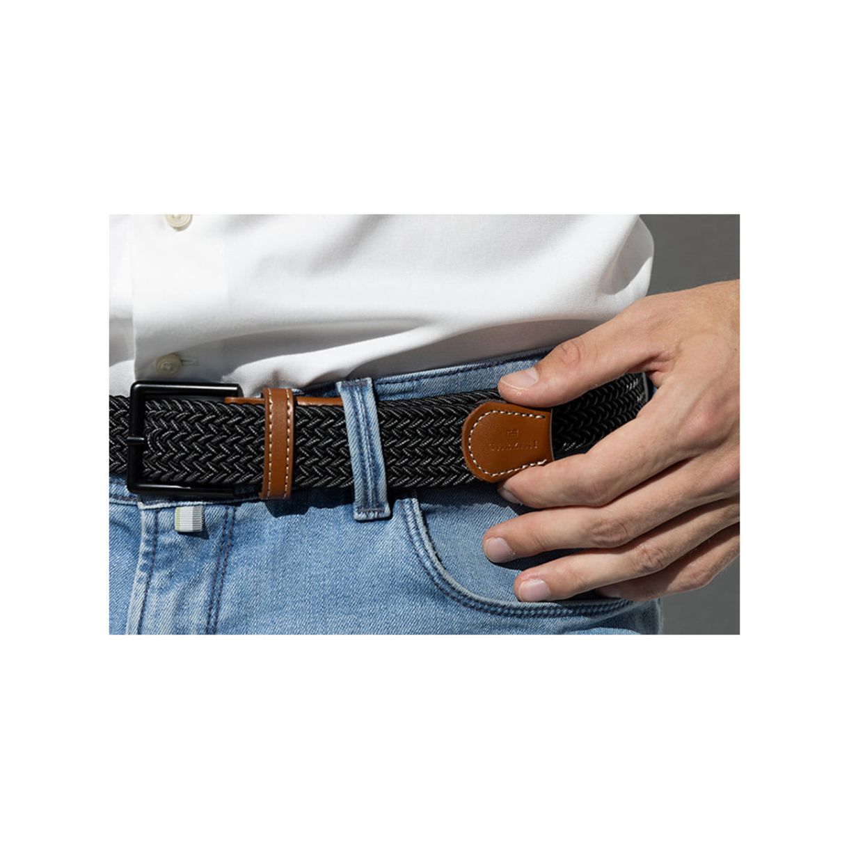 Изработен от издръжлив плетен ластик и завършен с първокласни кожени детайли, този колан предлага перфектния баланс между комфорт и изтънченост. Дизайнът без дупки се регулира лесно според талията ви - идеален за работа, пътуване или носене през свободното време.