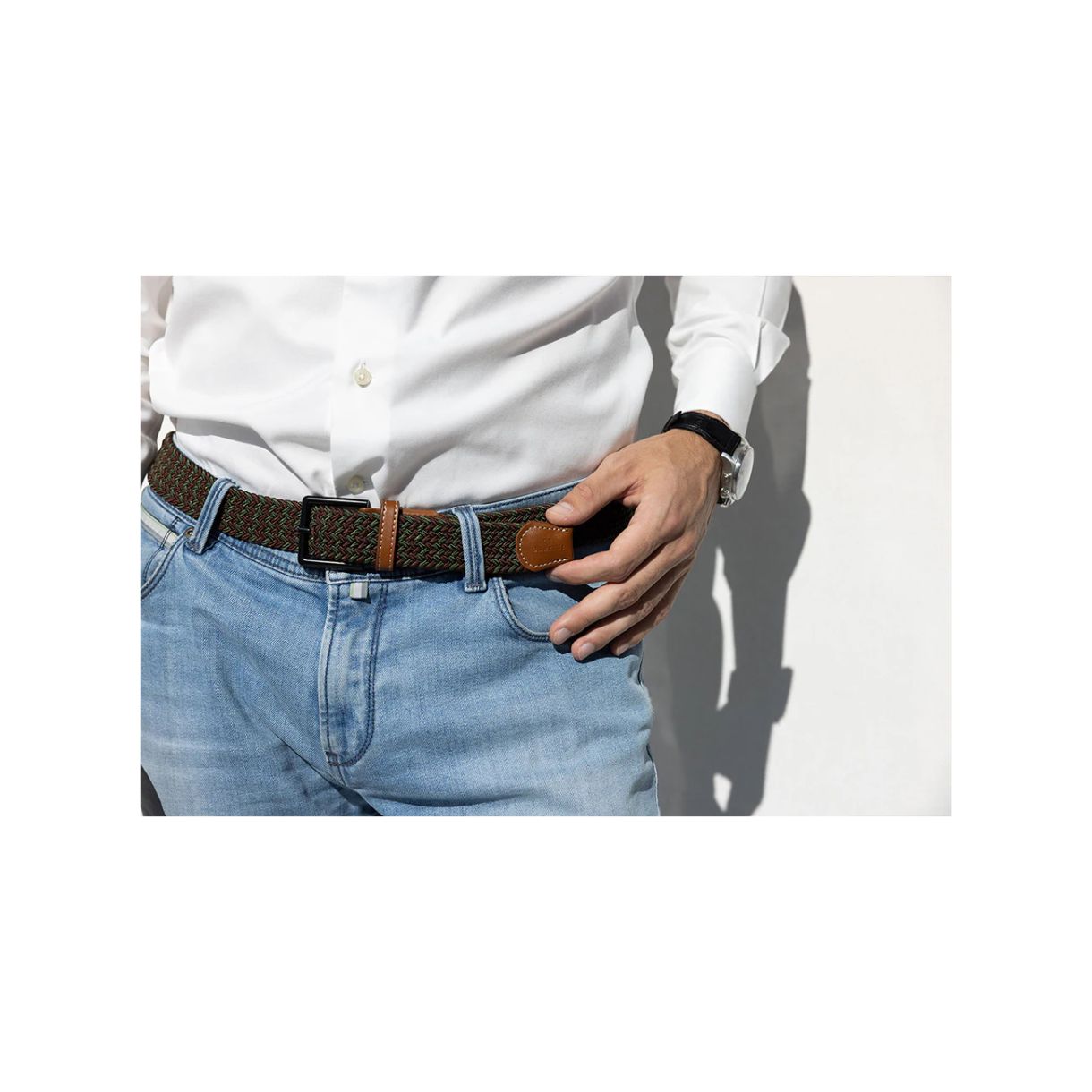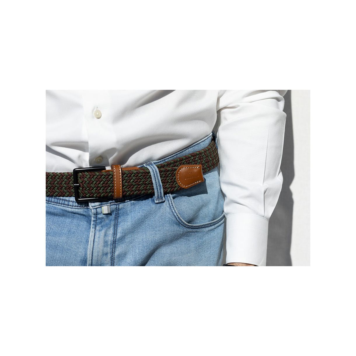 Изработен от издръжлив плетен ластик и завършен с първокласни кожени детайли, този колан предлага перфектния баланс между комфорт и изтънченост. Дизайнът без дупки се регулира лесно според талията ви - идеален за работа, пътуване или носене през свободното време.
