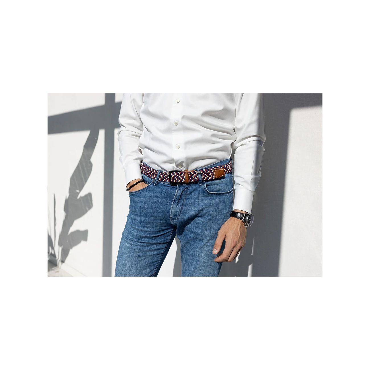 Изработен от издръжлив плетен ластик и завършен с първокласни кожени детайли, този колан предлага перфектния баланс между комфорт и изтънченост. Дизайнът без дупки се регулира лесно според талията ви - идеален за работа, пътуване или носене през свободното време.