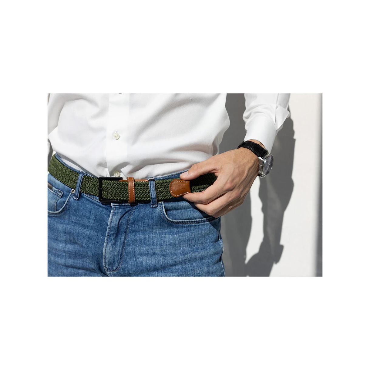 Изработен от издръжлив плетен ластик и завършен с първокласни кожени детайли, този колан предлага перфектния баланс между комфорт и изтънченост. Дизайнът без дупки се регулира лесно според талията ви - идеален за работа, пътуване или носене през свободното време.