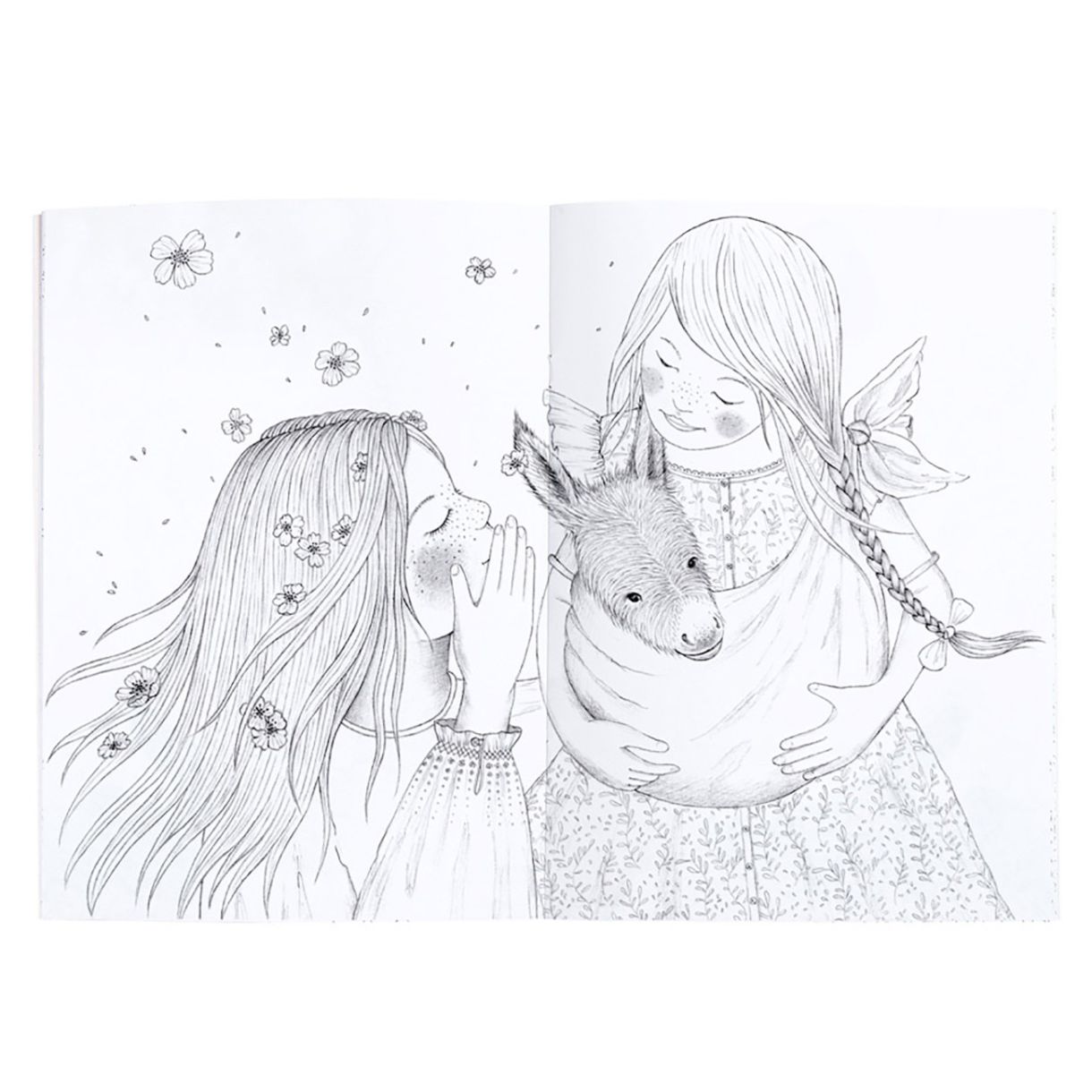 Танцувайте, мечтайте, бягайте сред цветята.. Тази книжка за оцветяване с 36 страници на Moulin Roty Ви кани да откриете нежния и поетичен свят на Розали, като оцветявате деликатните рисунки на Cécile Blindermann с моливи!