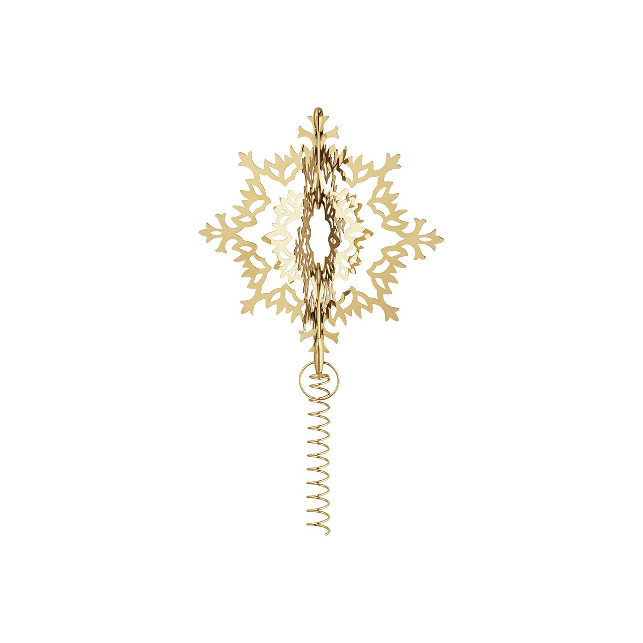 Украсяването на елхата е един от акцентите на сезона, но тя е истински украсена, само когато най-накрая е поставен върха. Внесете допълнителна частица скандинавски стил в този вълшебен момент с този зашеметяващ 18-каратов златен връх, който представлява триизмерна снежинка.