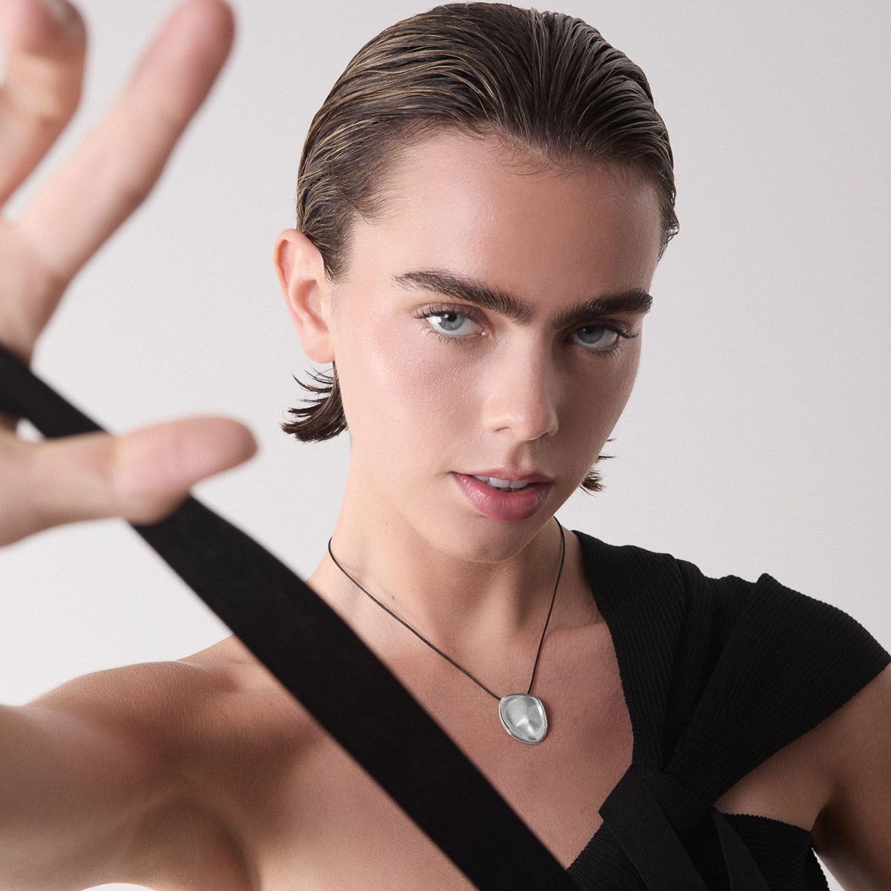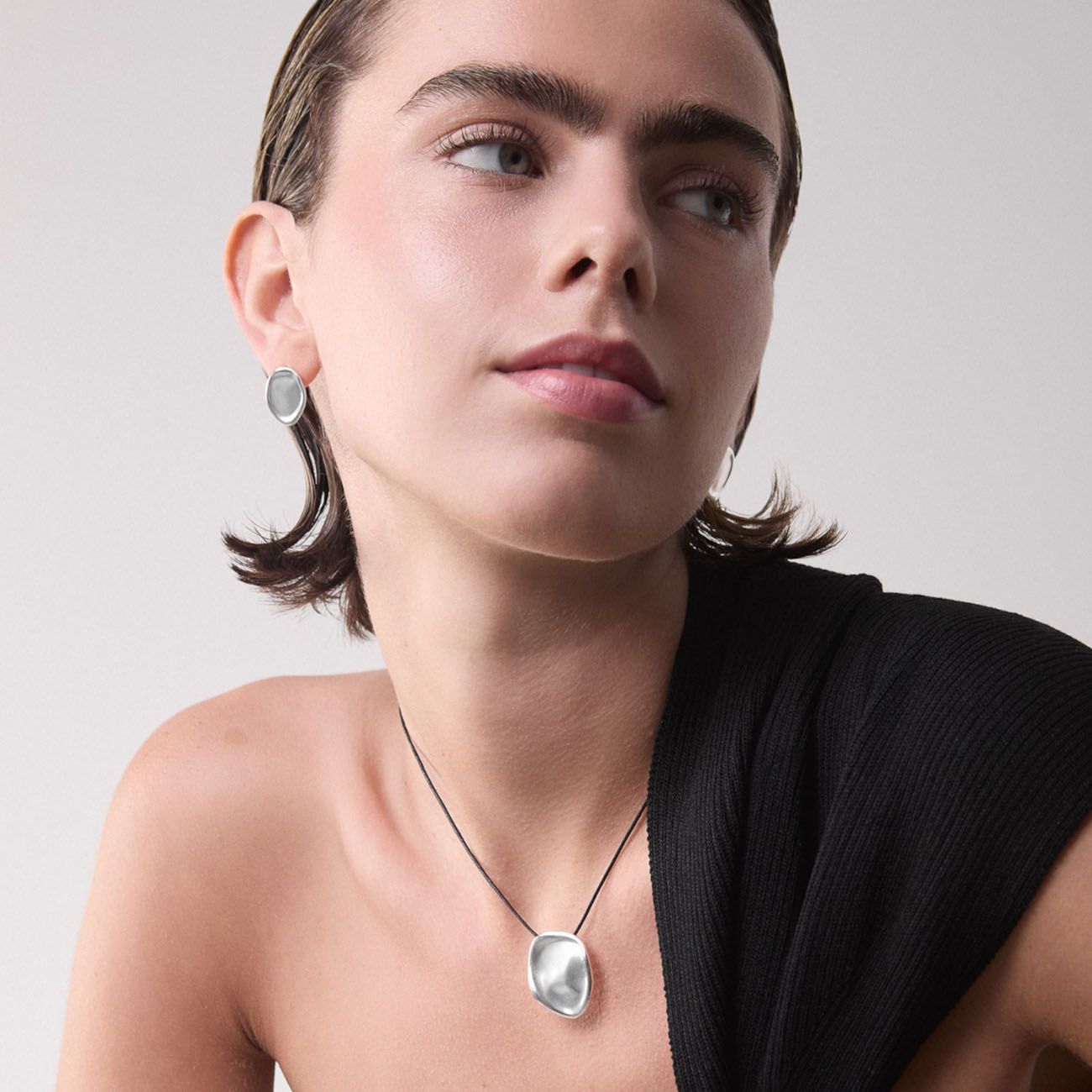 Сребърно колие с висулка с органични форми, вдъхновено от Коста Брава. Включен е шнур. Изработено от сребро проба 925. Закопчалка тип „омар“ и удължителна верижка.