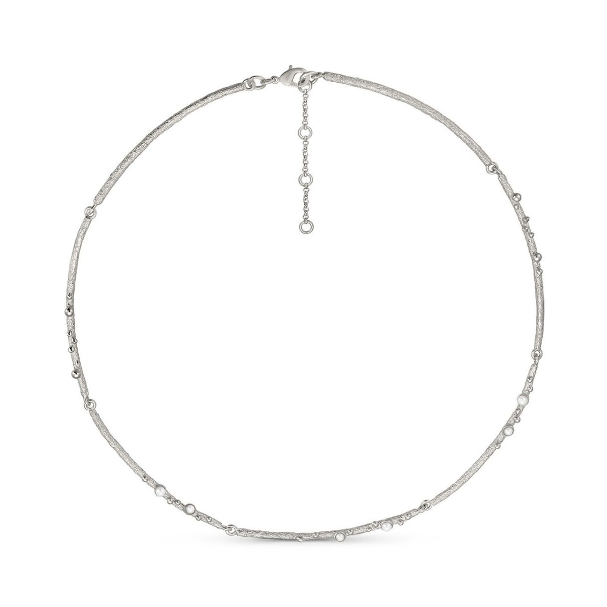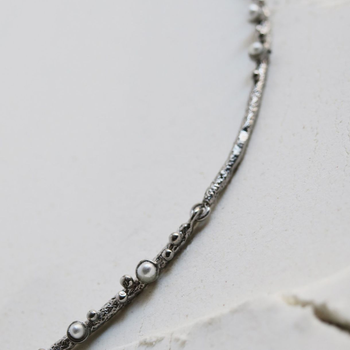 Колие с текстурирана кръгла висулка от сребро. Детайли от метални топчета и деликатни перли на основата на смола улавят експлозия от щастие. Изработено от сребро 925 с платинено покритие.  Верижка със закопчалка тип омар и удължителна верижка.