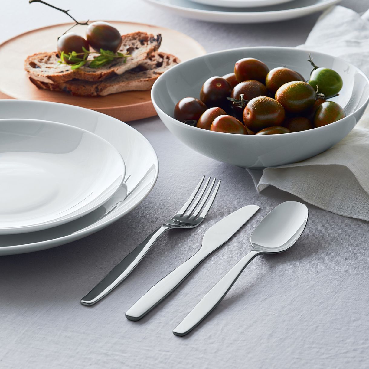 Меки, прецизни линии, съчетани с най-голямо внимание към формалните детайли. Оформените профили на всеки прибор са характеристиката на комплекта Itsumo, елемент, който осигурява приятно усещане както при хващане на приборите, така и при контакт с устните.