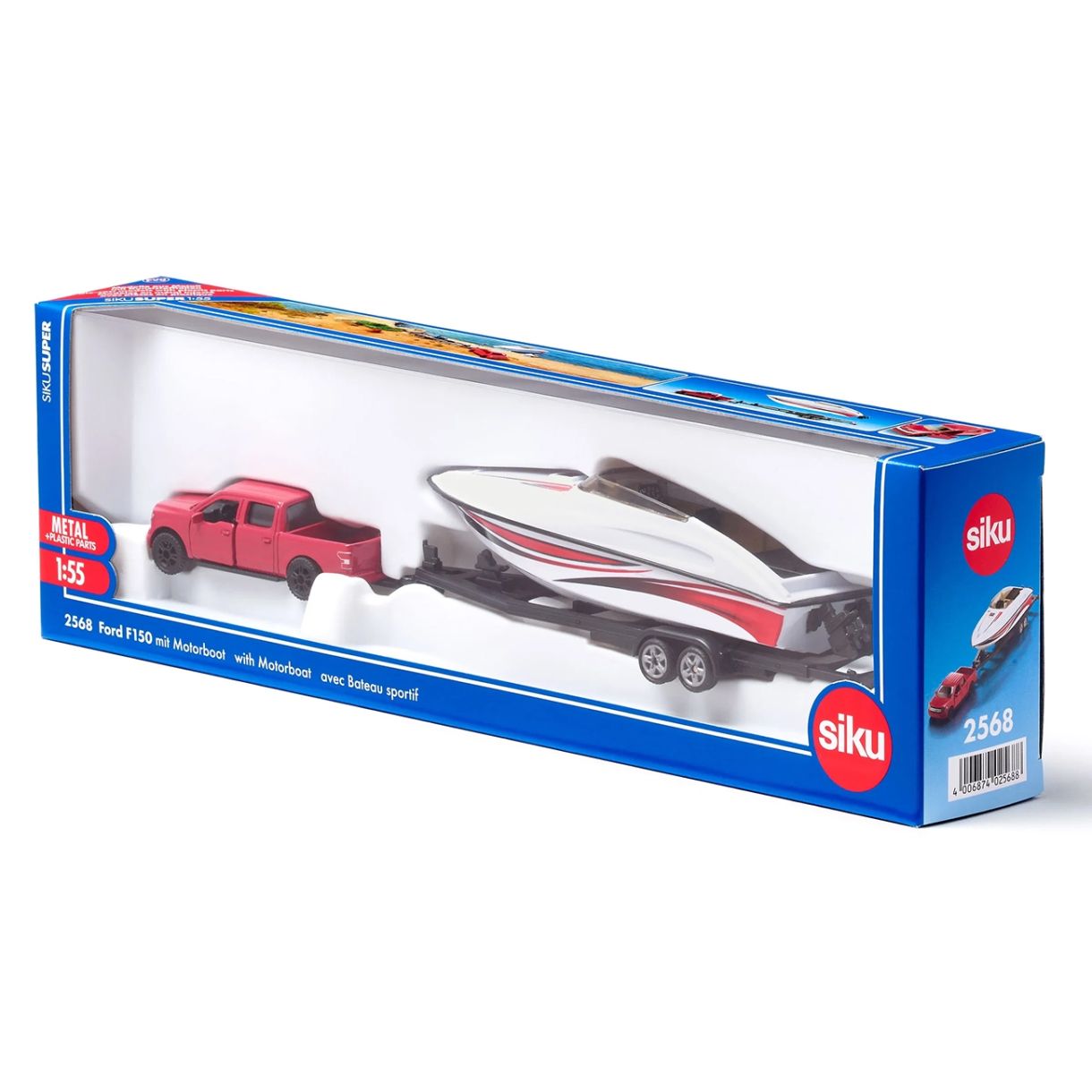 Ford F-150 е олицетворение на „Американския начин на живот“ и е най-продаваният автомобил в САЩ от над 30 години. Този мощен пикап е голям, здрав и многофункционален – идеален за всяко приключение. Този комплект играчки представя емблематичния Ford F-150 във вълнуваща комбинация: Мощна моторна лодка пътува върху здраво ремарке, осигурявайки безкрайно забавление на килима в детската стая! Ford F-150 впечатлява с автентичния си дизайн, гумени гуми и отличителен товарен отсек, който предлага много място за въображаеми приключения. Разбира се, пикапът разполага и с теглич за сигурно закрепване на висококачественото ремарке. Самата лодка е детайлно копие с лъскаво покритие и реалистични елементи, които дават на децата усещането, че са в средата на приключение. Моторната лодка е не само визуален акцент – тя дори плава! Независимо дали е на подложката за игра или във ваната, лодката носи забавление на всеки воден път. Със здравото си метално ремарке с тандемна ос, тя е лесна за закачане и безопасно транспортиране. Независимо дали става въпрос за пътуване до езерото, вълнуващо състезание с лодки или пътешествие през необятната прерия – с Ford F-150 и неговата моторна лодка винаги има нещо, което малките авантюристи да открият. Изработена от висококачествени и безопасни материали, тази играчка гарантира дълготрайно забавление и е задължителна за всеки малък фен на колите и лодките!