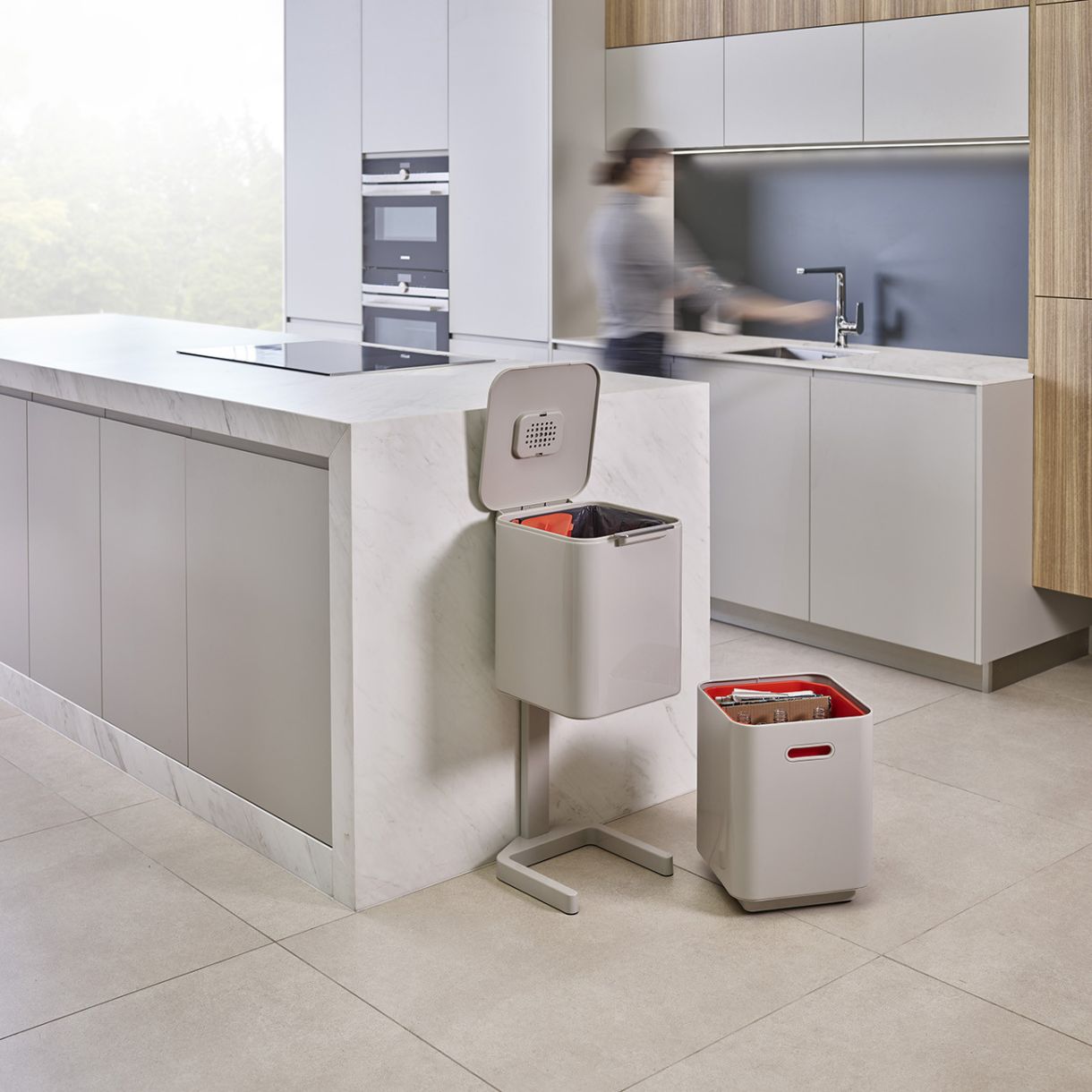 Кухненският кош за отпадъци е невъзпятият герой в сърцето на дома, но малцина се справят със задачата да събират разделно общите отпадъци, хранителните отпадъци и рециклирането. Запознайте се с Totem. Той има различни отделения за всички видове битови отпадъци, което ви позволява да разделите всичко в един компактен кош. Неговият интегриран контрол на миризмите поддържа и кухнята миришеща на свежест.