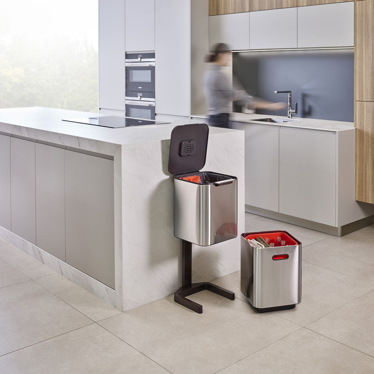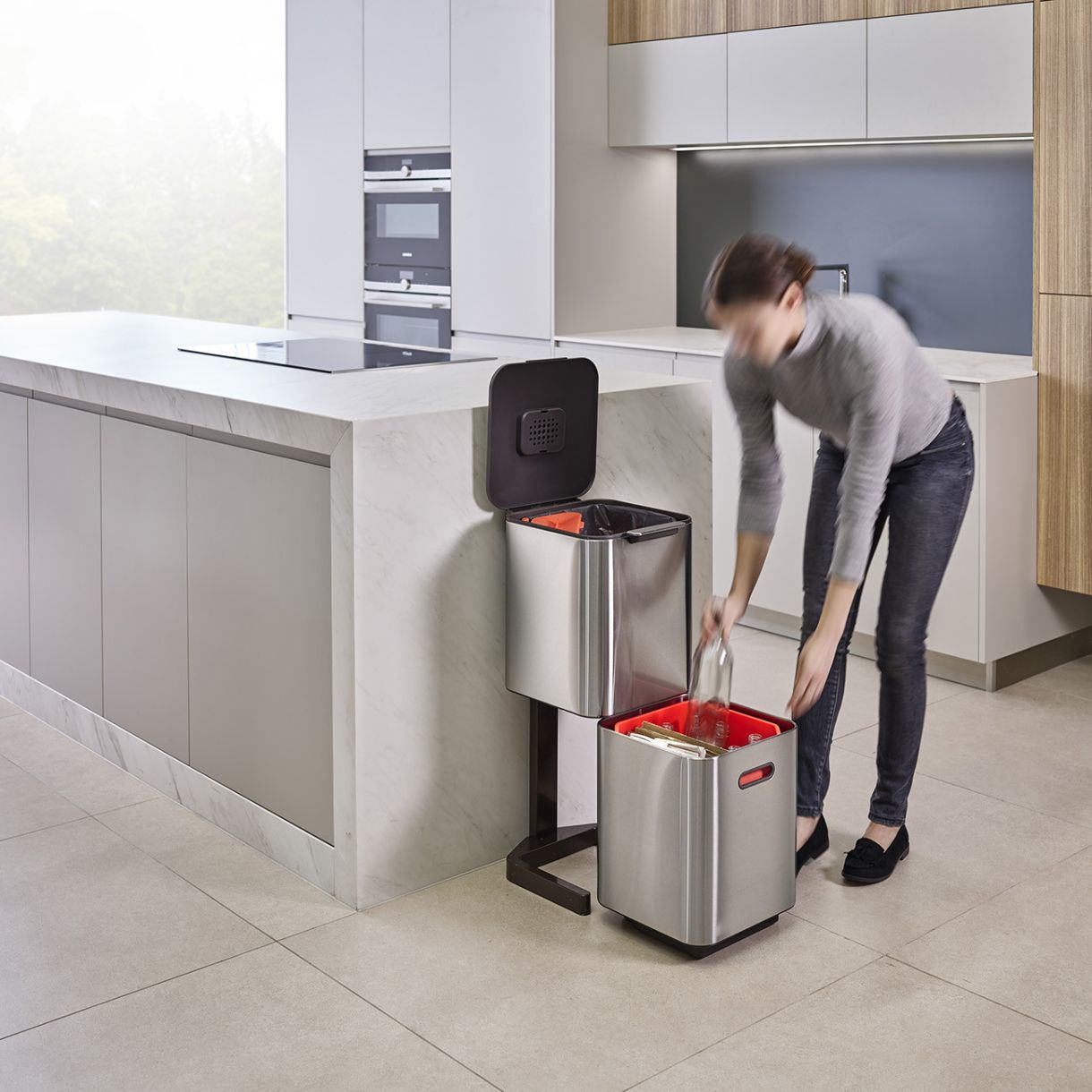 Кухненският кош за отпадъци е невъзпятият герой в сърцето на дома, но малцина се справят със задачата да събират разделно общите отпадъци, хранителните отпадъци и рециклирането. Запознайте се с Totem. Той има различни отделения за всички видове битови отпадъци, което ви позволява да разделите всичко в един компактен кош. Неговият интегриран контрол на миризмите поддържа и кухнята миришеща на свежест.