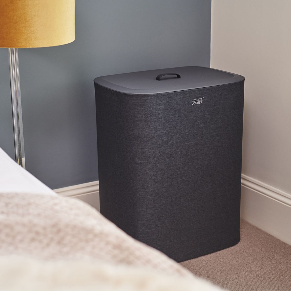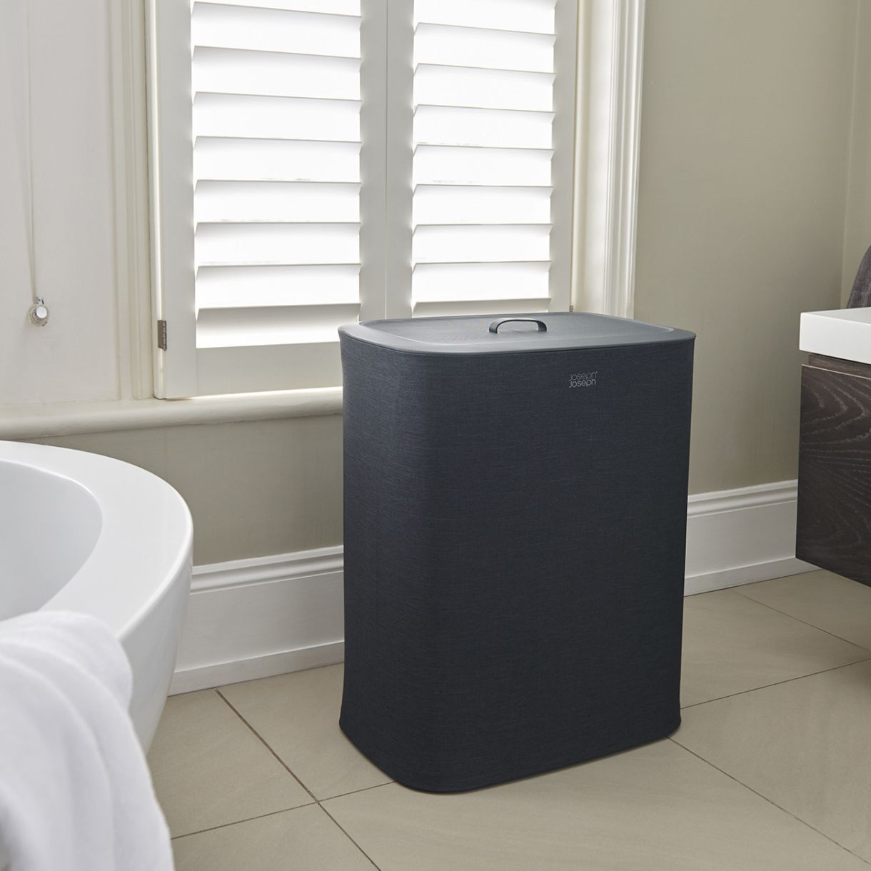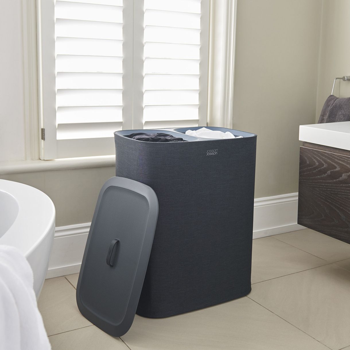 Разделете светлите и тъмните дрехи, благодарение на двете отделения на този удобен кош за пране. Tota е перфектен за спални, бани или мокри помещения. Предлага се плоско опакован с пълни инструкции за монтаж.