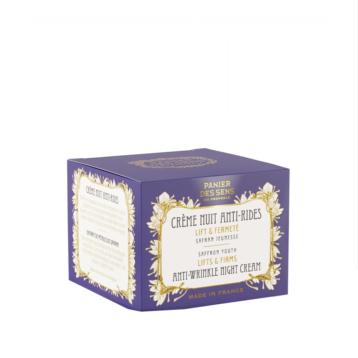 Panier des Sens поставя в сърцето на своята анти-ейдж грижа за лице екстракта от венчелистчета на шафран – изключителна растителна активна съставка. Отглеждан в Прованс, шафранът се събира ръчно само веднъж годишно, през есента. За да се запази максималната му ефективност, реколтата се извършва в ранните часове на деня – моментът, в който цветето съдържа най-висока концентрация на активни вещества.В тази формула шафранът действа като мощен антиоксидантен щит, който се бори с вредните ефекти на оксидативния стрес, причинен от ежедневните агресии на околната среда. Той стимулира обновяването на епидермиса и забавя процесите на стареене, за да бъде кожата по-стегната, по-еластична и по-плътна.