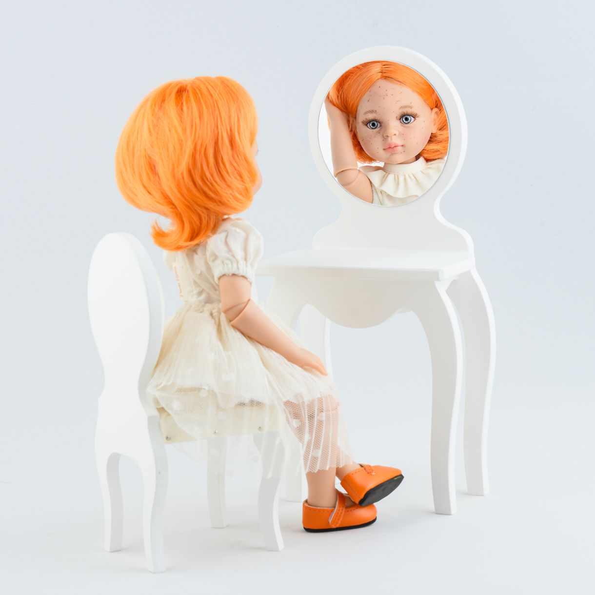 Ръчно изработени кукли, от серията Las Amigas Articuladas на испанската фирма Paola Reina. Ръцете, главата и краката на куклите се движат и така те може да бъде в стоящо или седящо положение. Очите са изразителни и големи, не могат да се затварят и са изработени от безопасна прозрачна пластмаса. Косите изглеждат естествени и с блясък. Захващането им е много плътно и стабилно, което позволява лесното разресването и оформяне на прически. Дрехите са от европейски висококачествени текстили.
