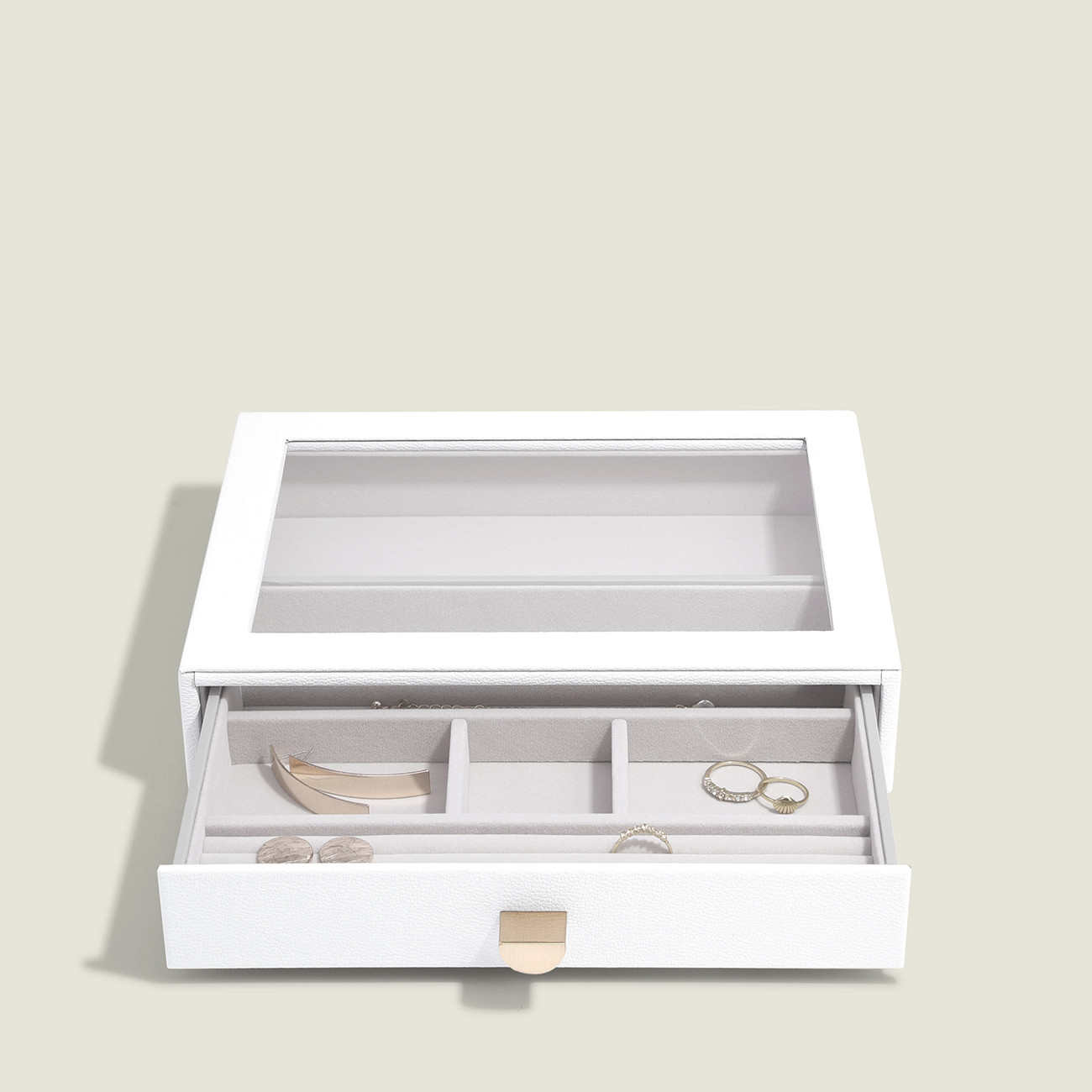 Кутиите за бижута на Stackers са умело проектирани, така че можете да създадете свои собствени, като изберете кои слоеве и аксесоари най-добре подхождат на вашата колекция бижута. Като алтернатива, всеки слои е идеалното съхранение на бижута в чекмеджето, ако искате да поддържате тоалетната си масичка чиста.