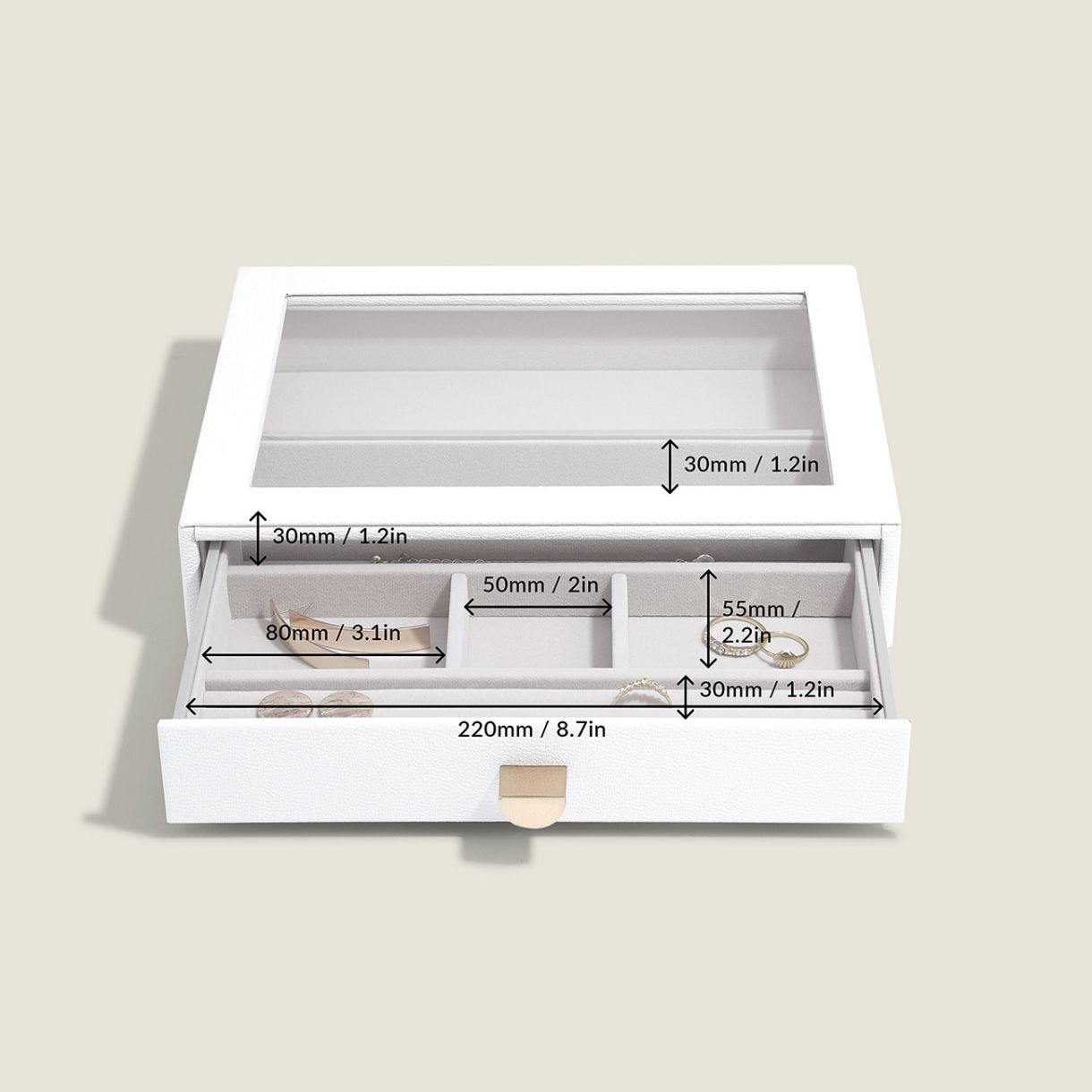 Кутиите за бижута на Stackers са умело проектирани, така че можете да създадете свои собствени, като изберете кои слоеве и аксесоари най-добре подхождат на вашата колекция бижута. Като алтернатива, всеки слои е идеалното съхранение на бижута в чекмеджето, ако искате да поддържате тоалетната си масичка чиста.