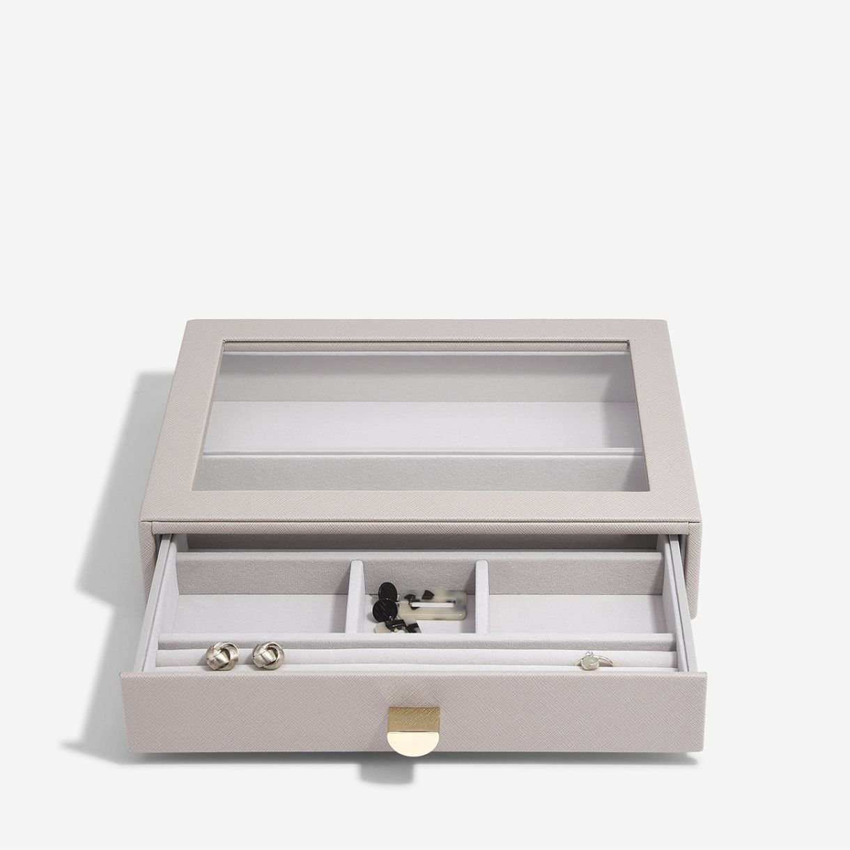Кутиите за бижута на Stackers са умело проектирани, така че можете да създадете свои собствени, като изберете кои слоеве и аксесоари най-добре подхождат на вашата колекция бижута. Като алтернатива, всеки слои е идеалното съхранение на бижута в чекмеджето, ако искате да поддържате тоалетната си масичка чиста.