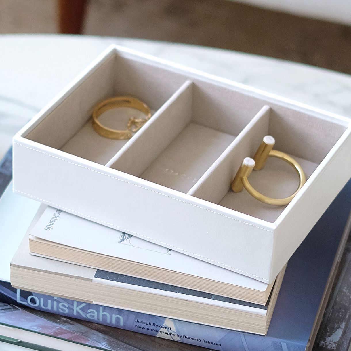 Кутиите за бижута на Stackers са умело проектирани, така че можете да създадете свои собствени, като изберете кои слоеве и аксесоари най-добре подхождат на вашата колекция бижута. Като алтернатива, всеки слои е идеалното съхранение на бижута в чекмеджето, ако искате да поддържате тоалетната си масичка чиста.