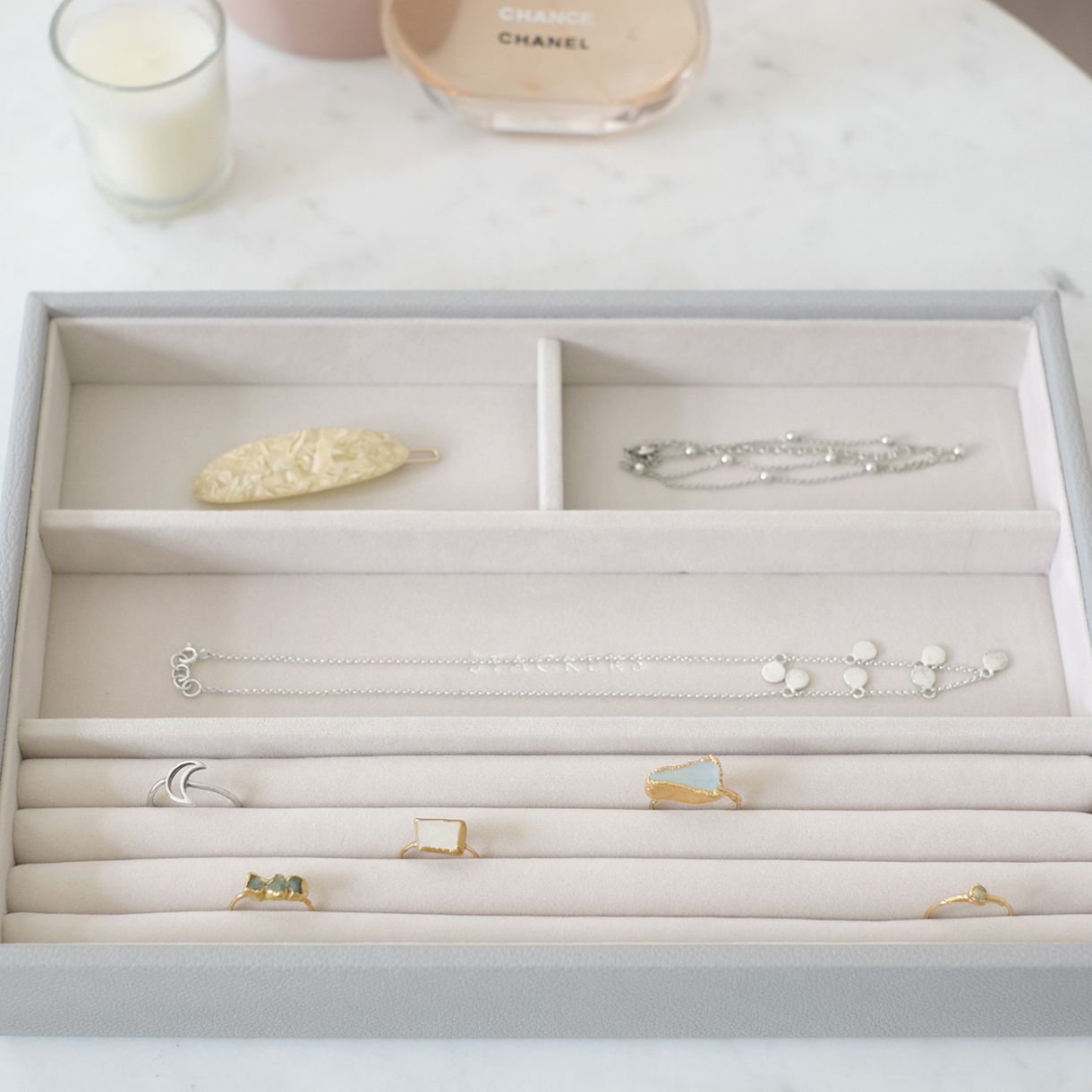 Кутиите за бижута на Stackers са умело проектирани, така че можете да създадете свои собствени, като изберете кои слоеве и аксесоари най-добре подхождат на вашата колекция бижута. Като алтернатива, всеки слои е идеалното съхранение на бижута в чекмеджето, ако искате да поддържате тоалетната си масичка чиста.