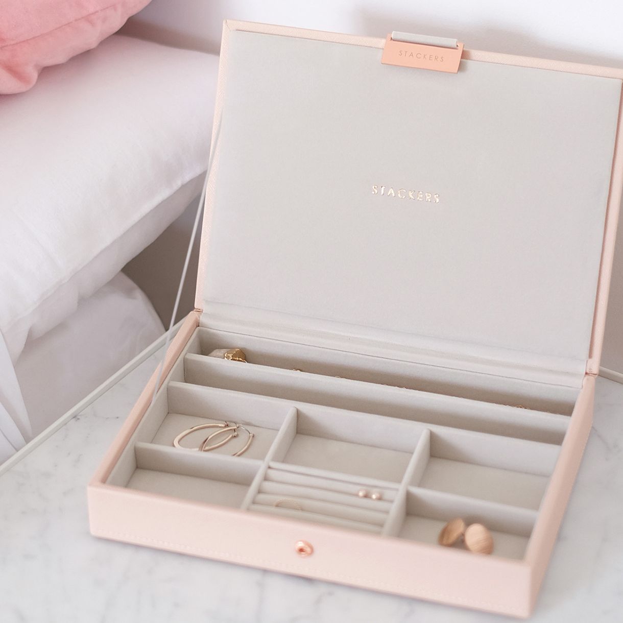Кутиите за бижута на Stackers са умело проектирани, така че можете да създадете свои собствени, като изберете кои слоеве и аксесоари най-добре подхождат на вашата колекция бижута. Като алтернатива, всеки слои е идеалното съхранение на бижута в чекмеджето, ако искате да поддържате тоалетната си масичка чиста.
